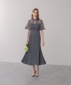 レジャ Leja パールパイピングボレロ付き2wayマーメイドフレアロングドレス美脚効果結婚式 パーティードレス 成人式 20代 30代 40代 (B