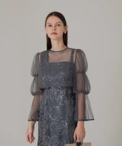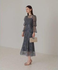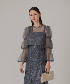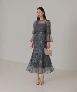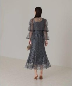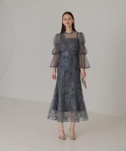 レジャ Leja フレアスリーブボレロ花柄刺繍マーメイドドレスワンピースドレス美脚効果結婚式 パーティードレス 成人式 20代 30代 40代 (BL