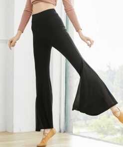 レディースダンスパンツ パンタロン調ベルボトム ガウチョパンツ ストレッチシフォン切替スリットラッパパンツ フレアパンツ ヨガラテンバレエ古典ダンス