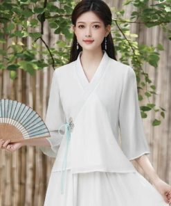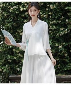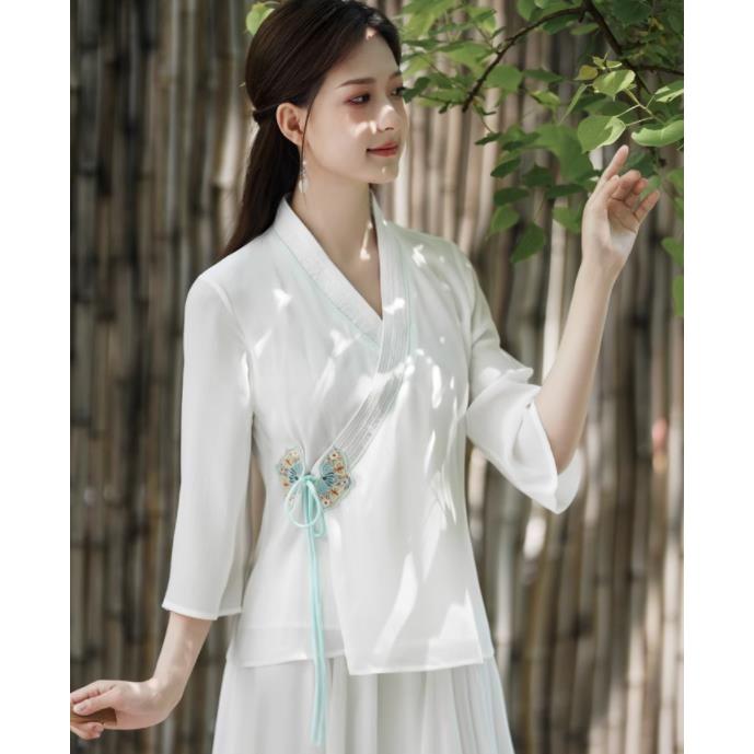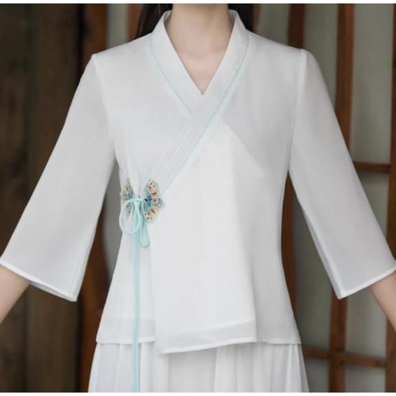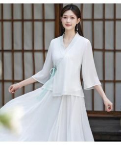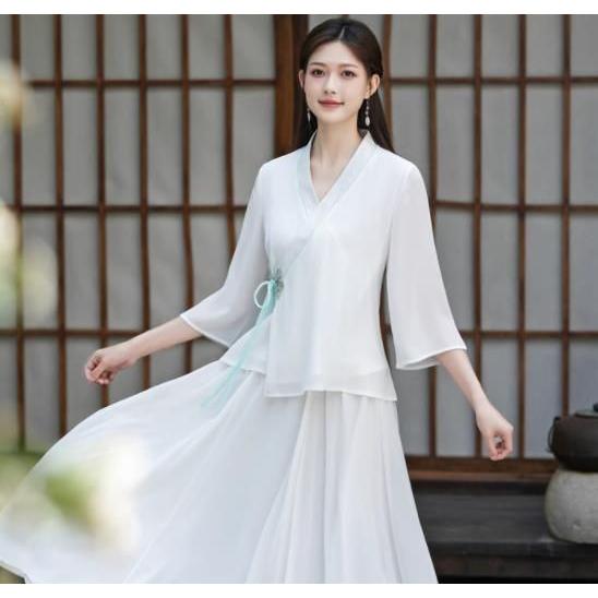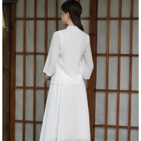 レディースファション トップス マキシ チャイナ風 中国風 長袖Tシャツ ゆったり 民族風 ナチュラル エスニック リネン ふんわり マタニティ復古風 ロング丈 写真撮影