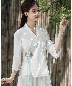 レディースファション トップス マキシ チャイナ風 中国風 長袖Tシャツ ゆったり 民族風 ナチュラル エスニック リネン ふんわり マタニティ復古風