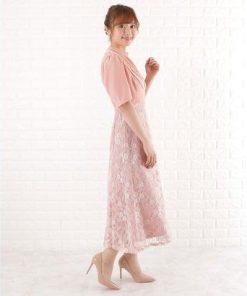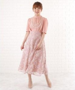 レースレディース Lace Ladies ドッキングレースワンピースドレス (ピンク)