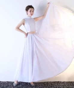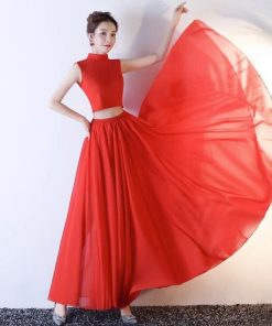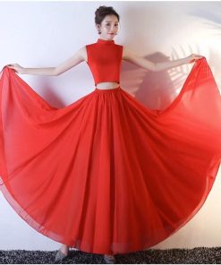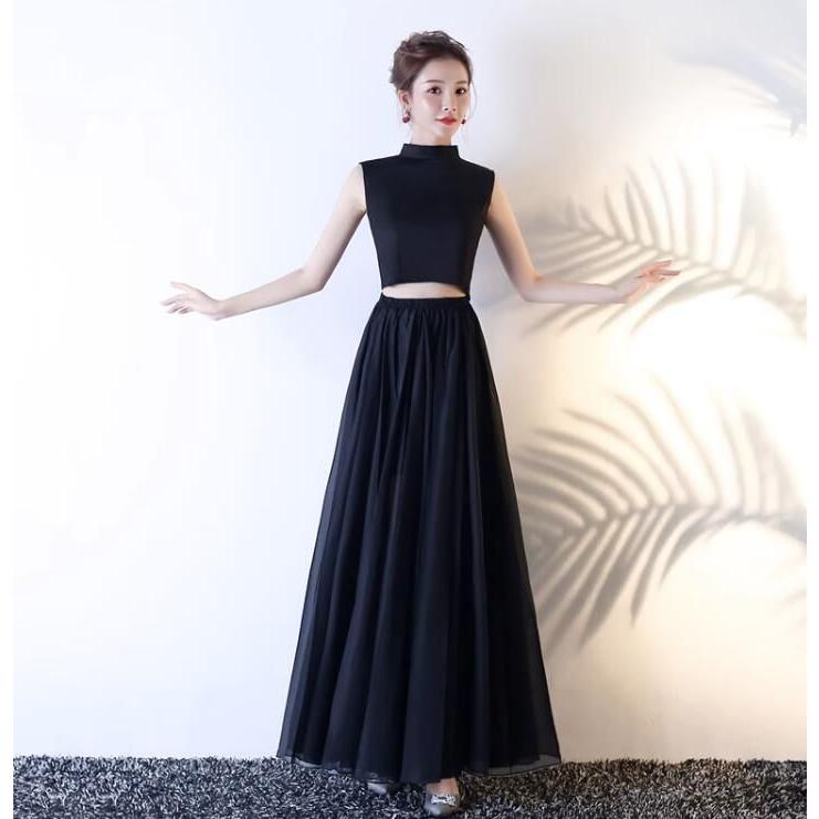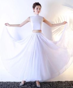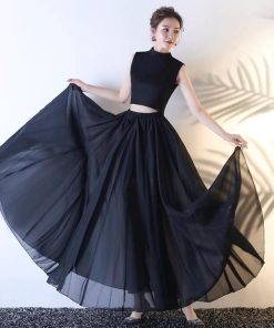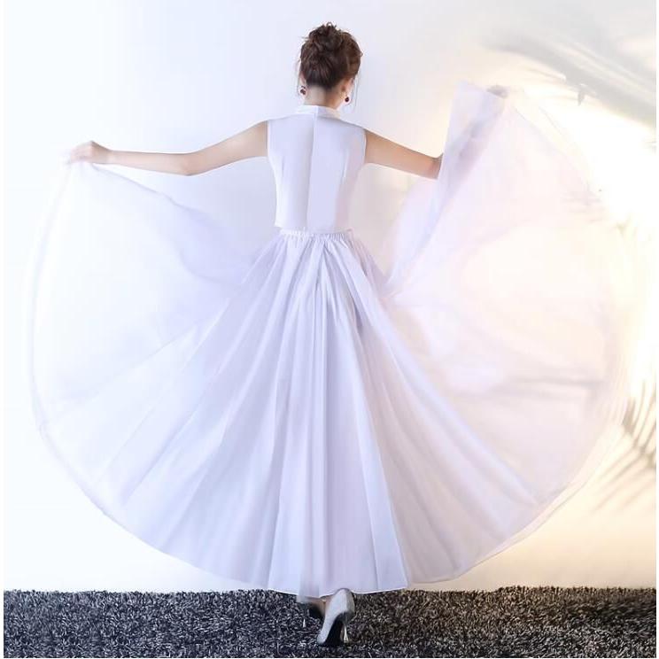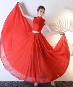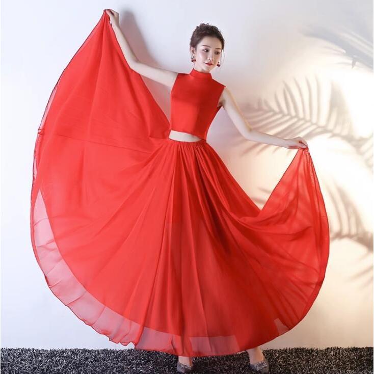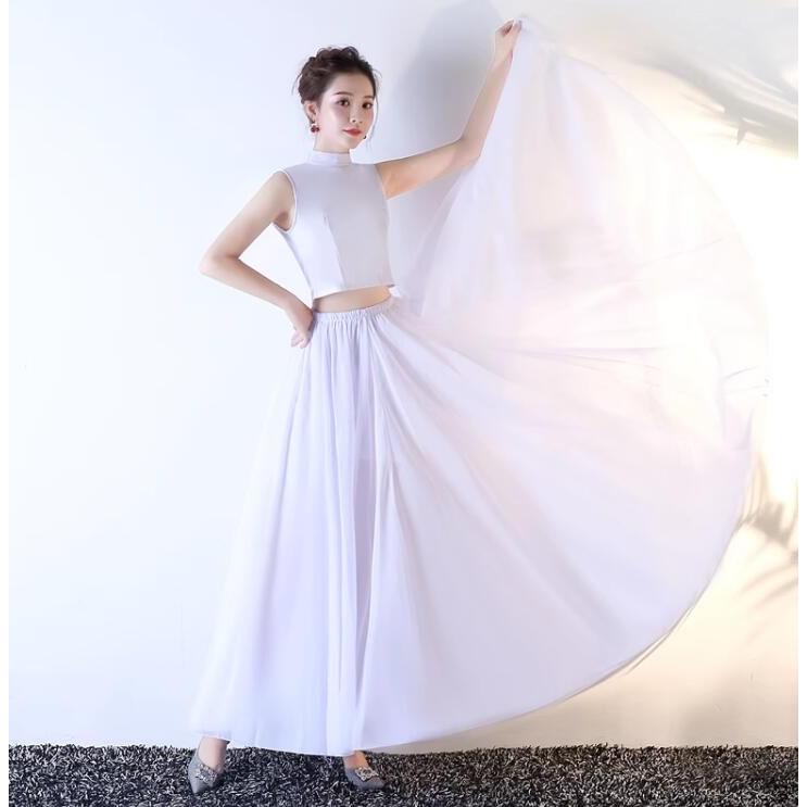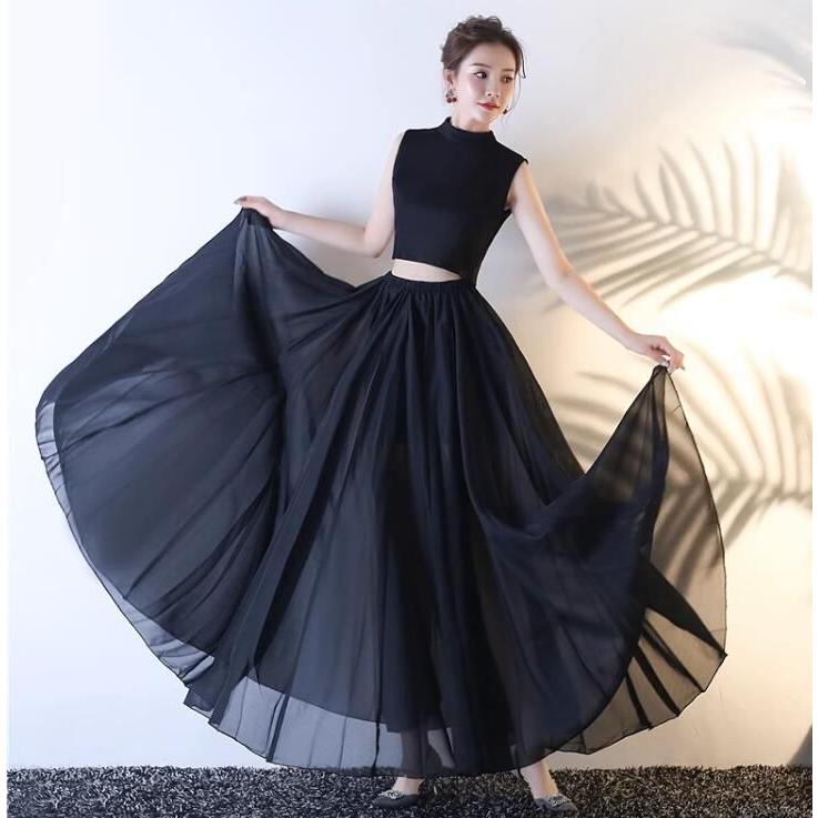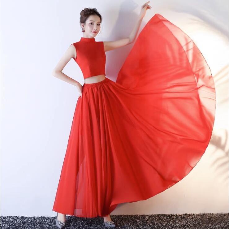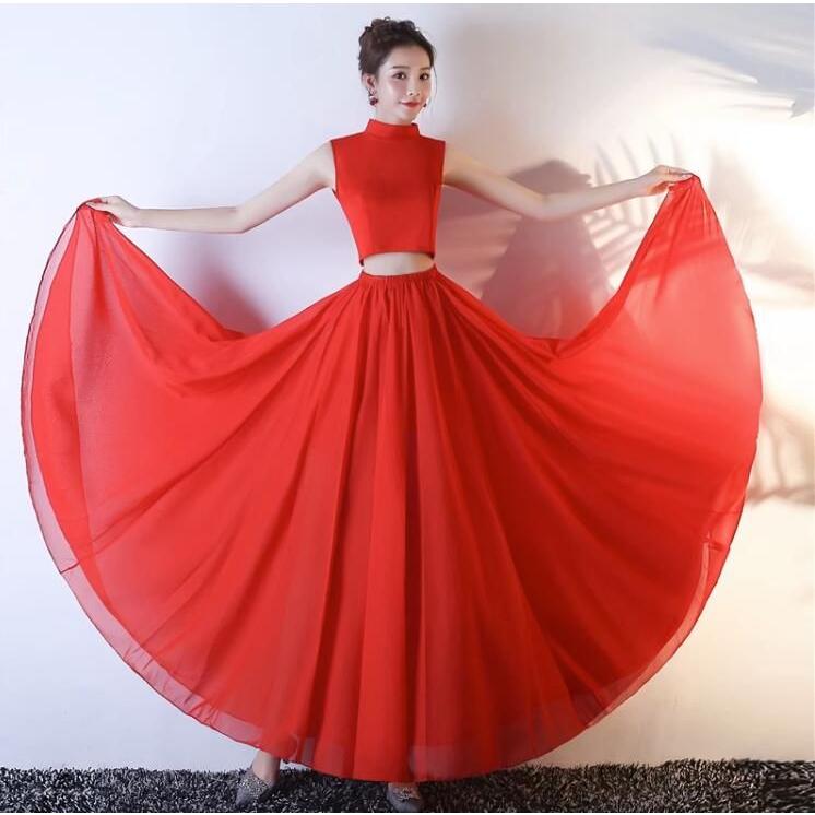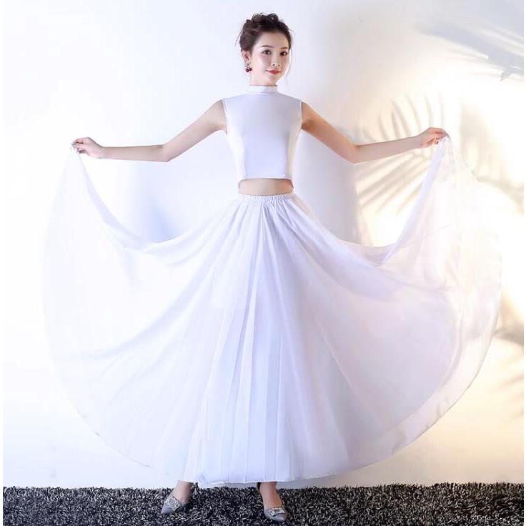 ロング丈 広がる ダンススカート レディース 古典ダンス モダンダンス衣装 大きい裾 飄逸 シフォン スカート ハイネック ショート丈 袖なしトップス 大人 子供