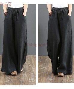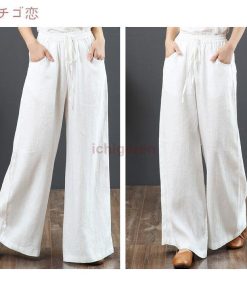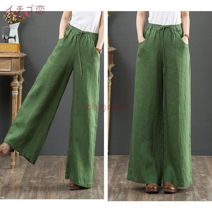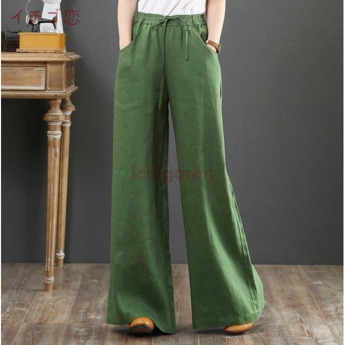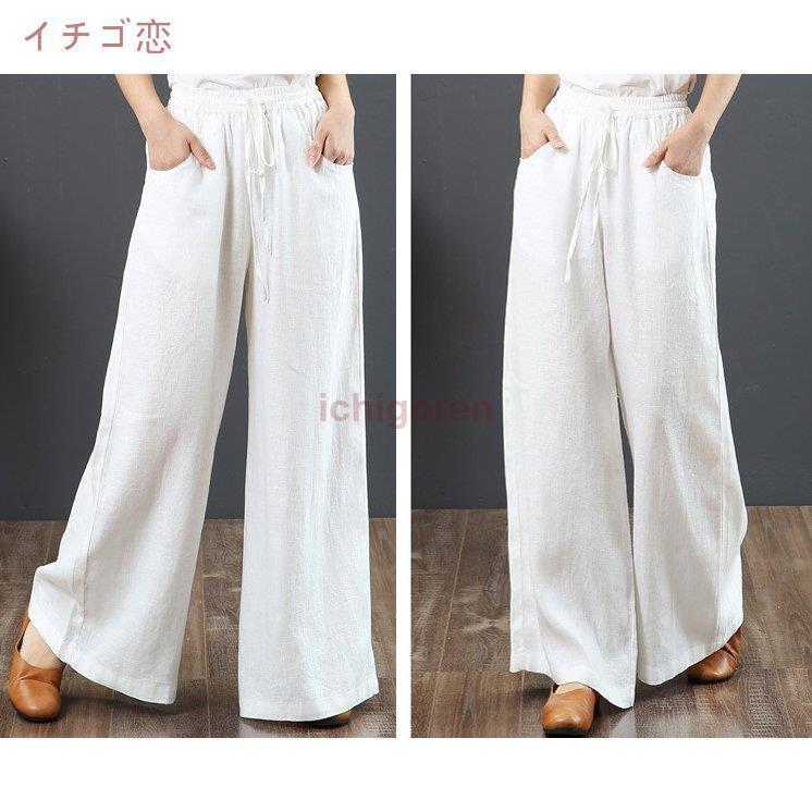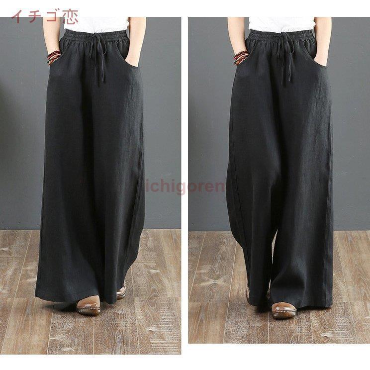 ワイドパンツ レディース 大きいサイズ 春 夏 パンツ ゆったり ウエストゴム 楽ちん ワイド リラックス ボトムス リネン 綿 コットン 黒 ブラック 白 ホワイト
