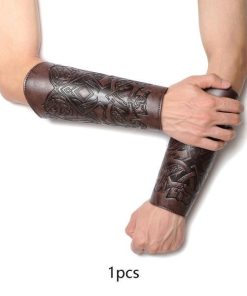 中世のブレスレット 大人用 PUレザー ガントレット リストバンド コスプレアクセサリー コーヒー色 1個