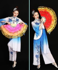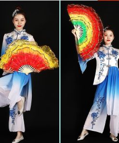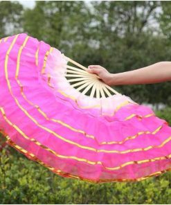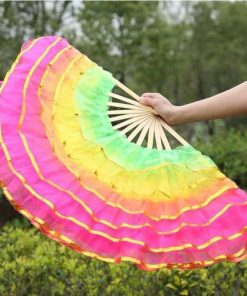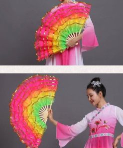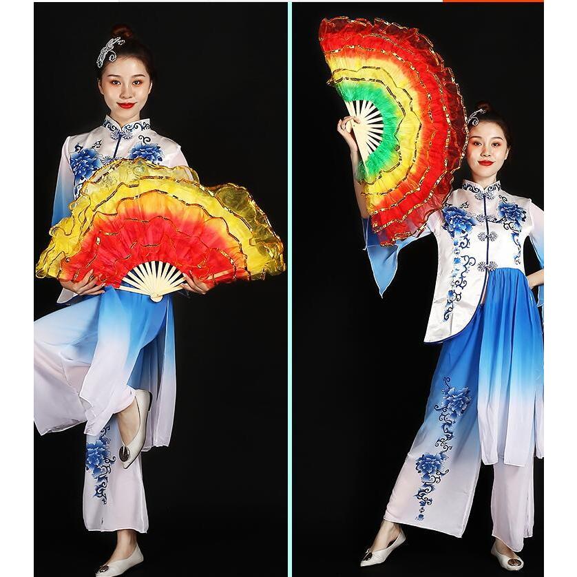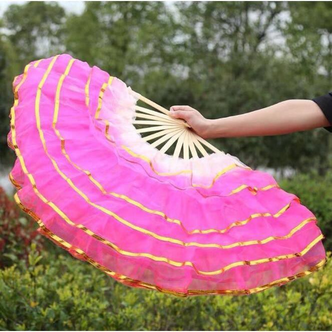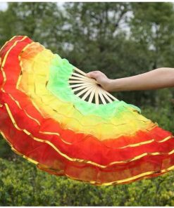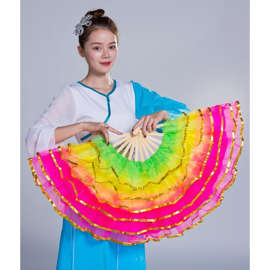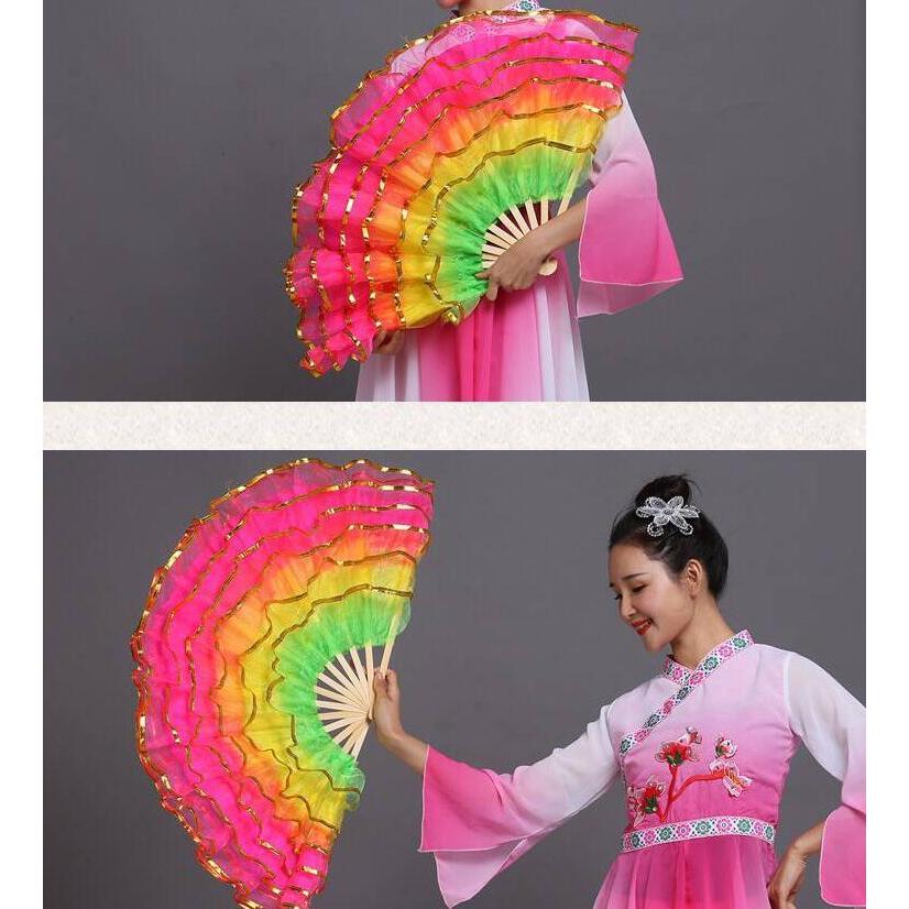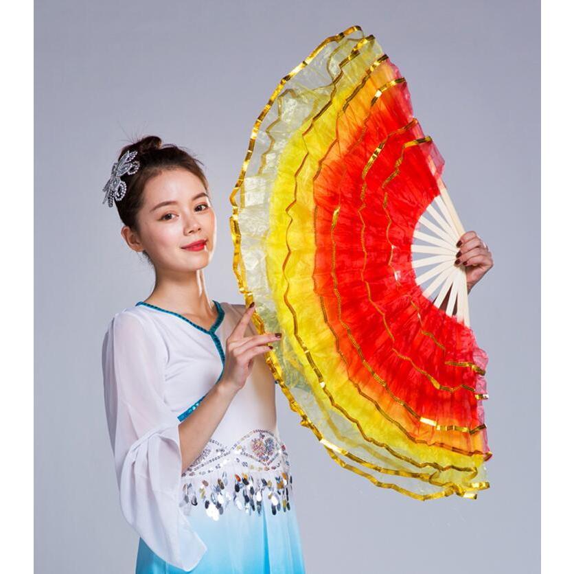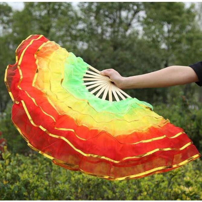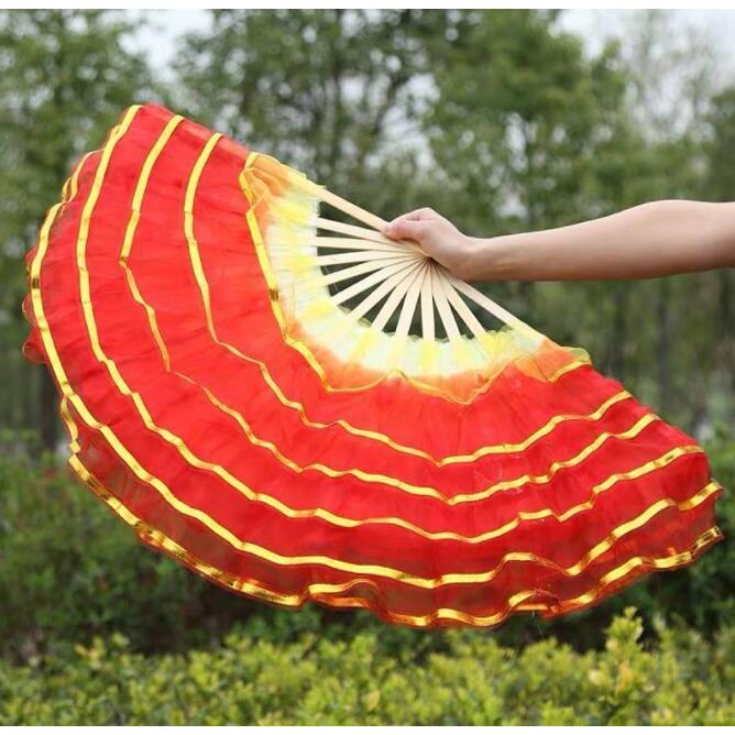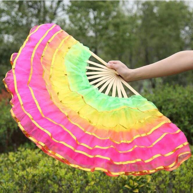 中華ダンス用 扇子 舞台 ステージグッズ シフォン フリル重ね ふわんり グラデーション かわいい 舞扇 舞扇子 演舞扇 チャイナ風民族ダンス 古典舞踊ダンス 道具