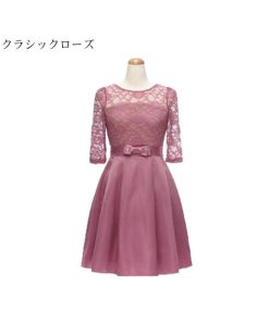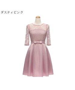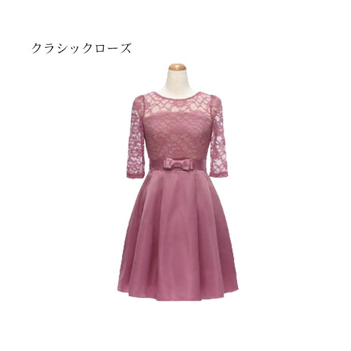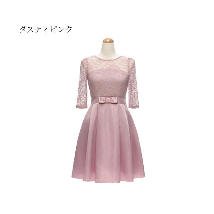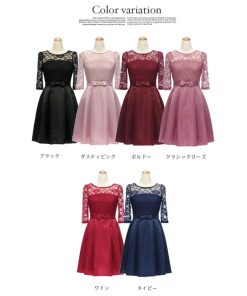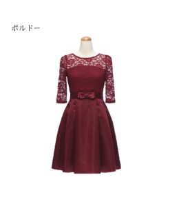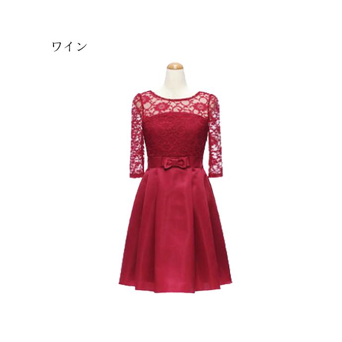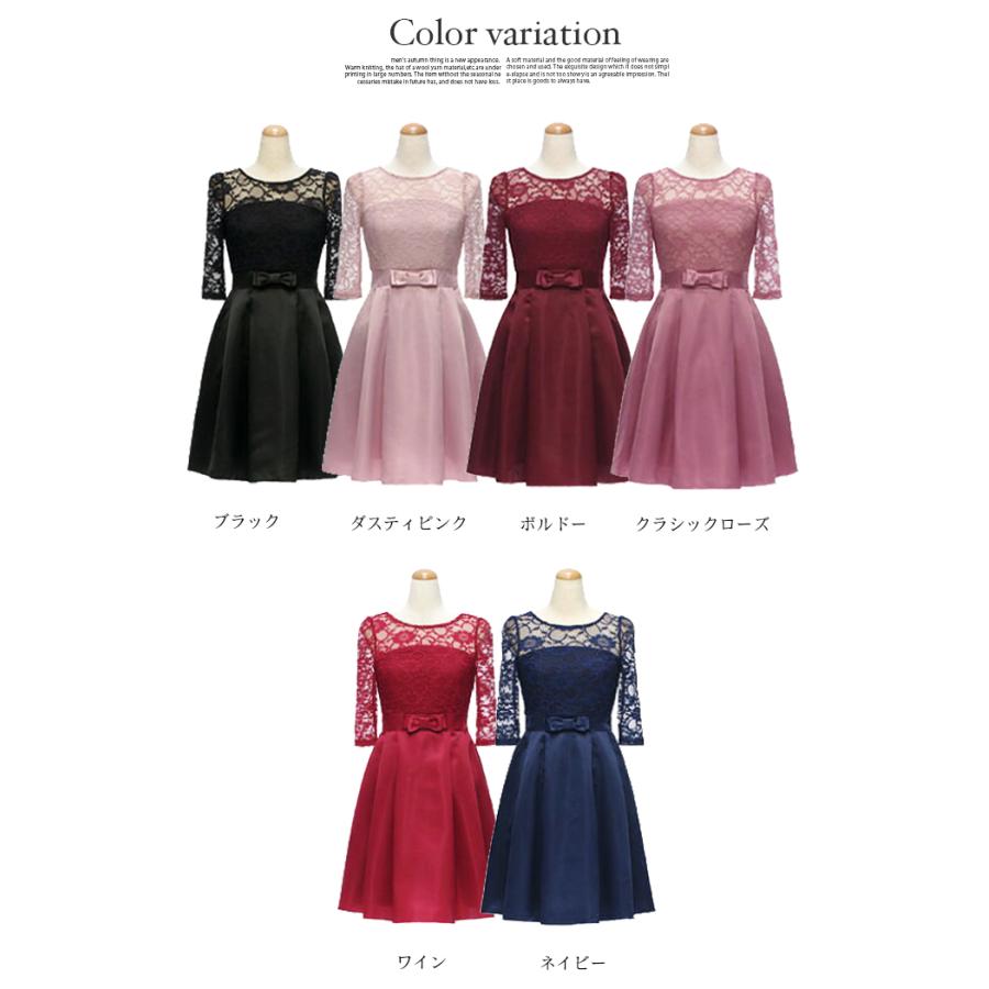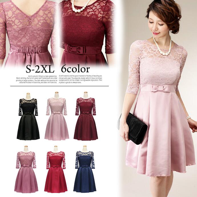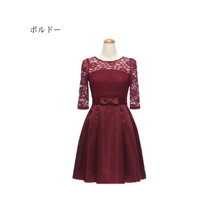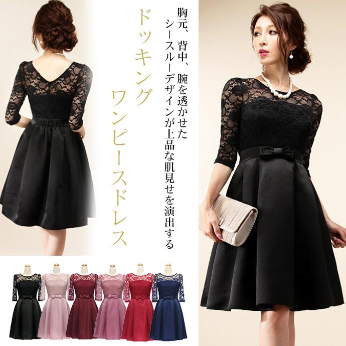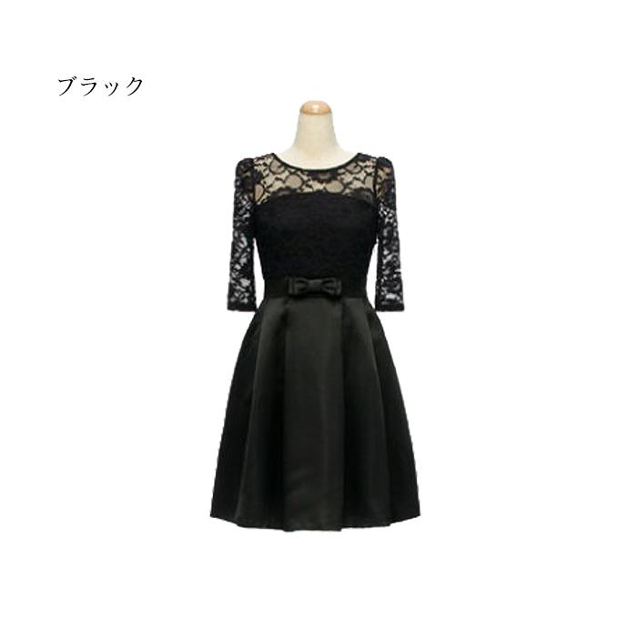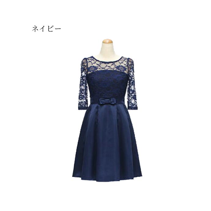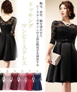 値下げ ドレス ワンピース パーティードレス シースルー シアーレース ドッキング 7部袖 パーティー お呼ばれ 結婚式 送料無料