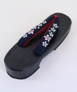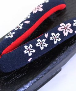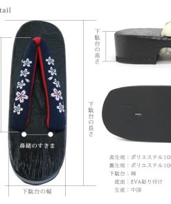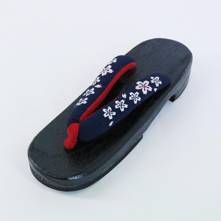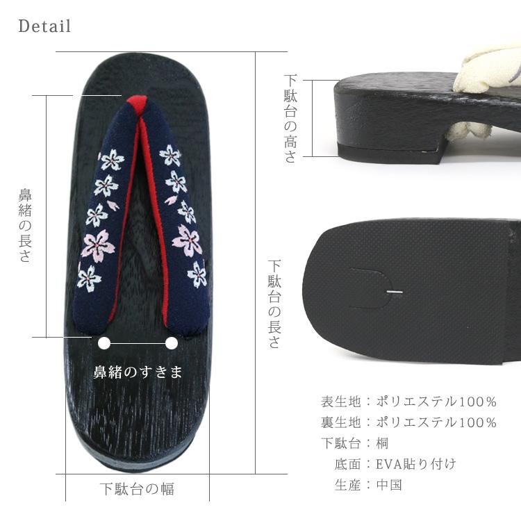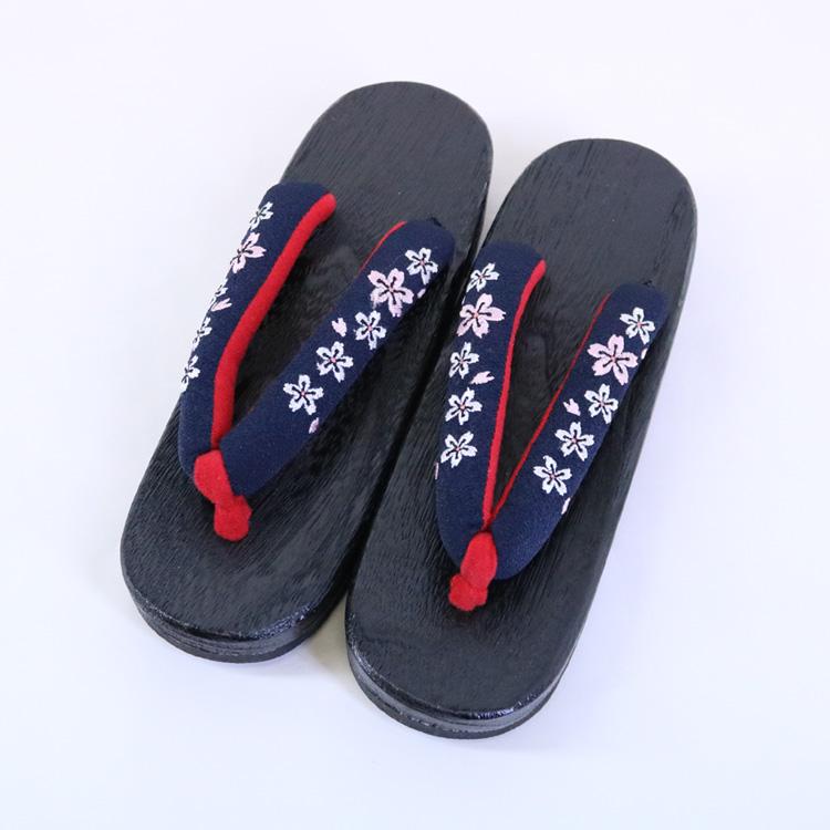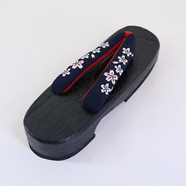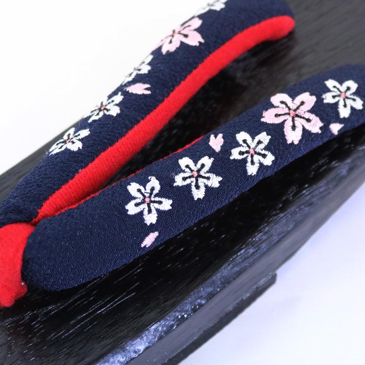 刺繍入り 桐下駄 [NV02] 黒台 鼻緒 紺 ネイビー 桐 下駄 ゆかた下駄 刺繍 ちりめん 縮緬 浴衣 ゆかた レディース フリーサイズ 婦人下駄