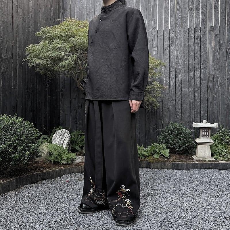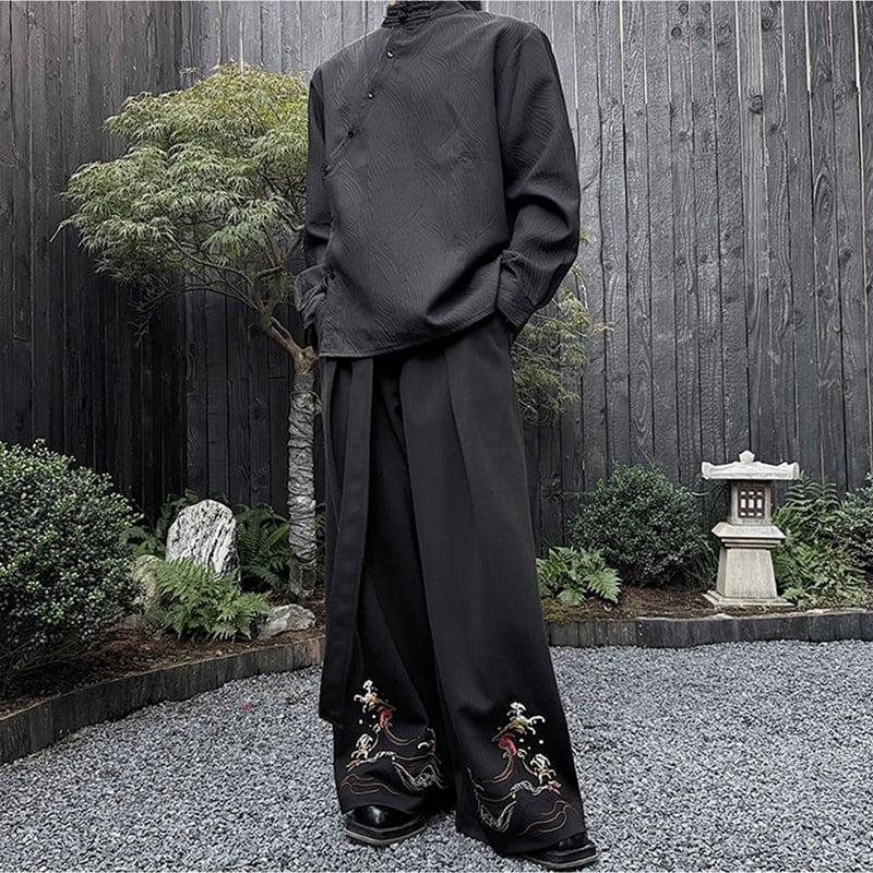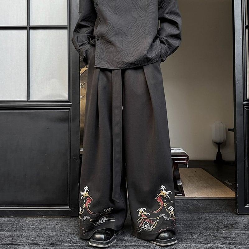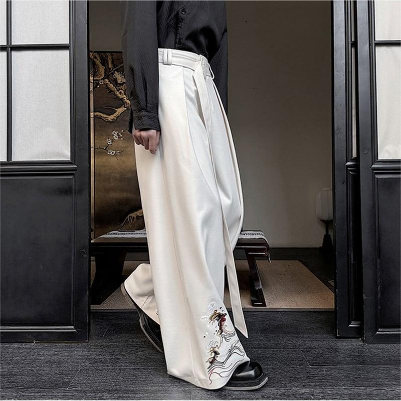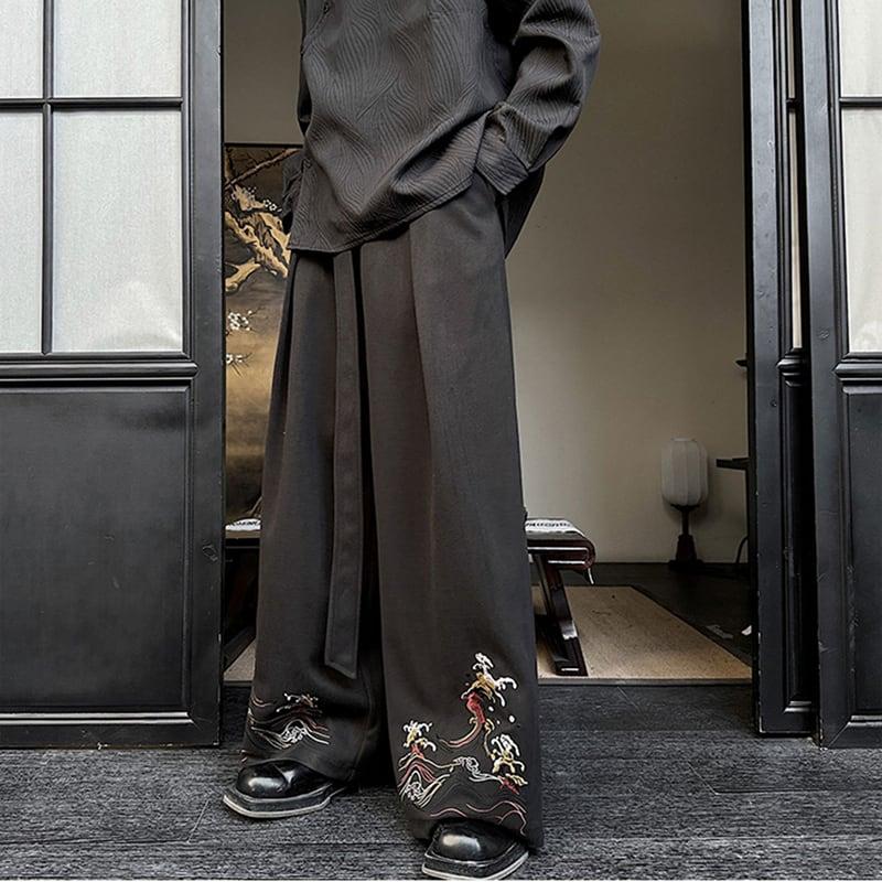 刺繍 2color ガウチョパンツ ボトムス 男女兼用 メンズ ブラック ベージュ