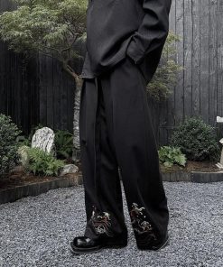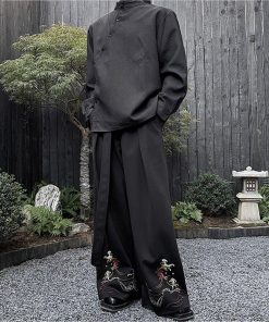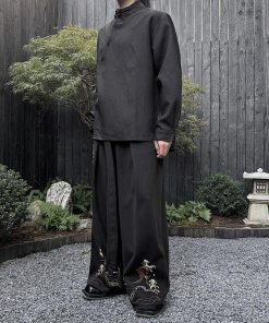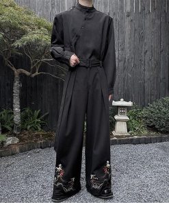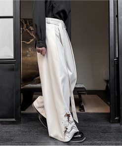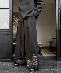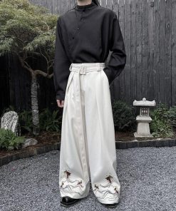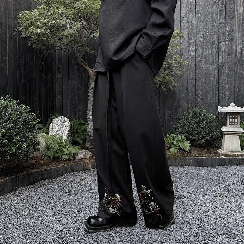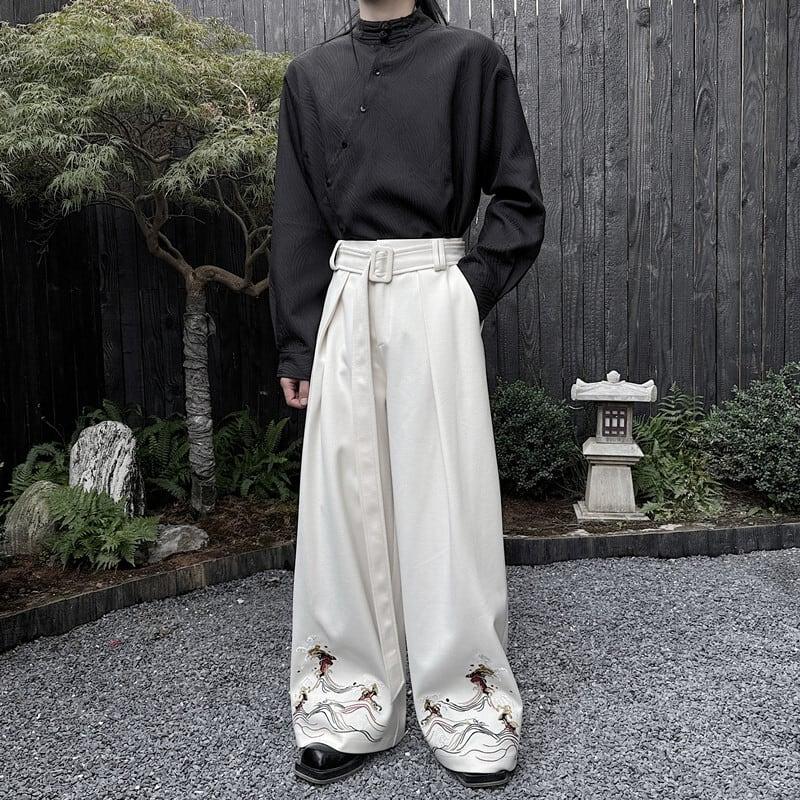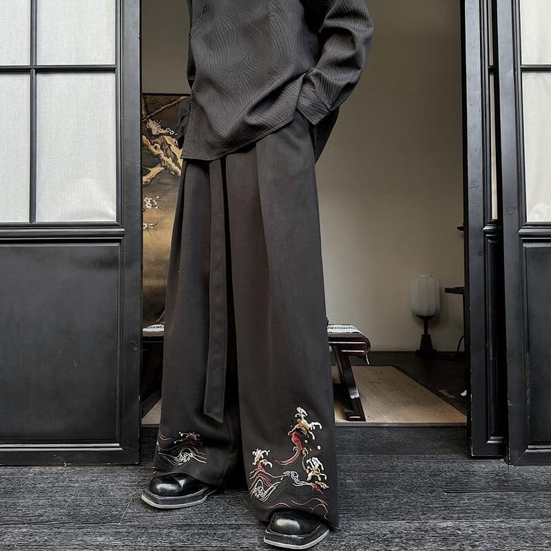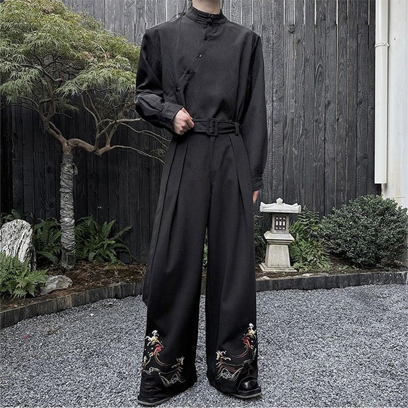 刺繍 2color ガウチョパンツ ボトムス 男女兼用 メンズ ブラック ベージュ