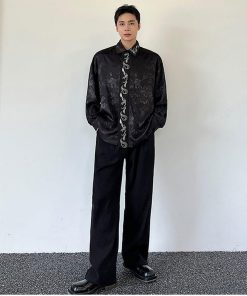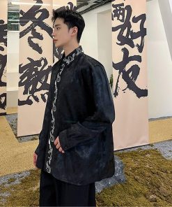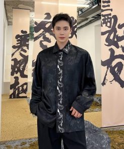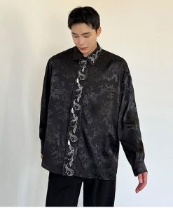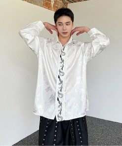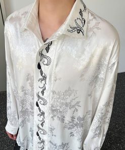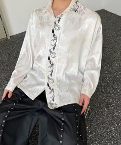 刺繍 2color トップス 長袖シャツ 男女兼用 メンズ ゆったり ブラック ホワイト