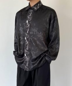 刺繍 2color トップス 長袖シャツ 男女兼用 メンズ ゆったり ブラック ホワイト