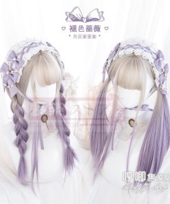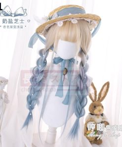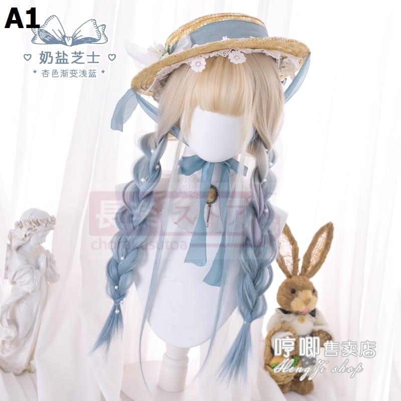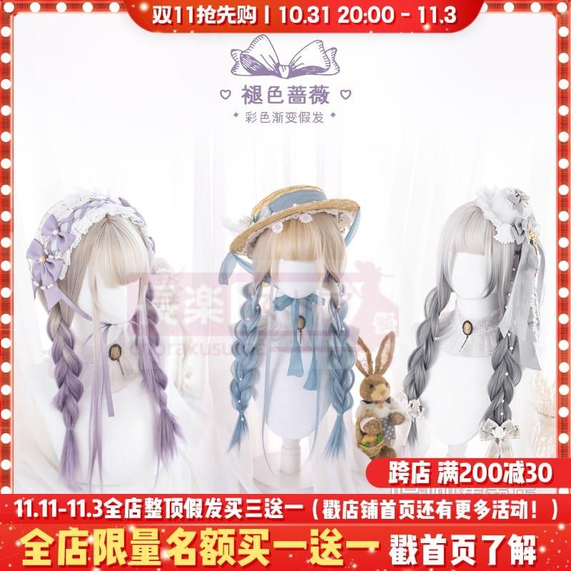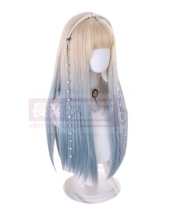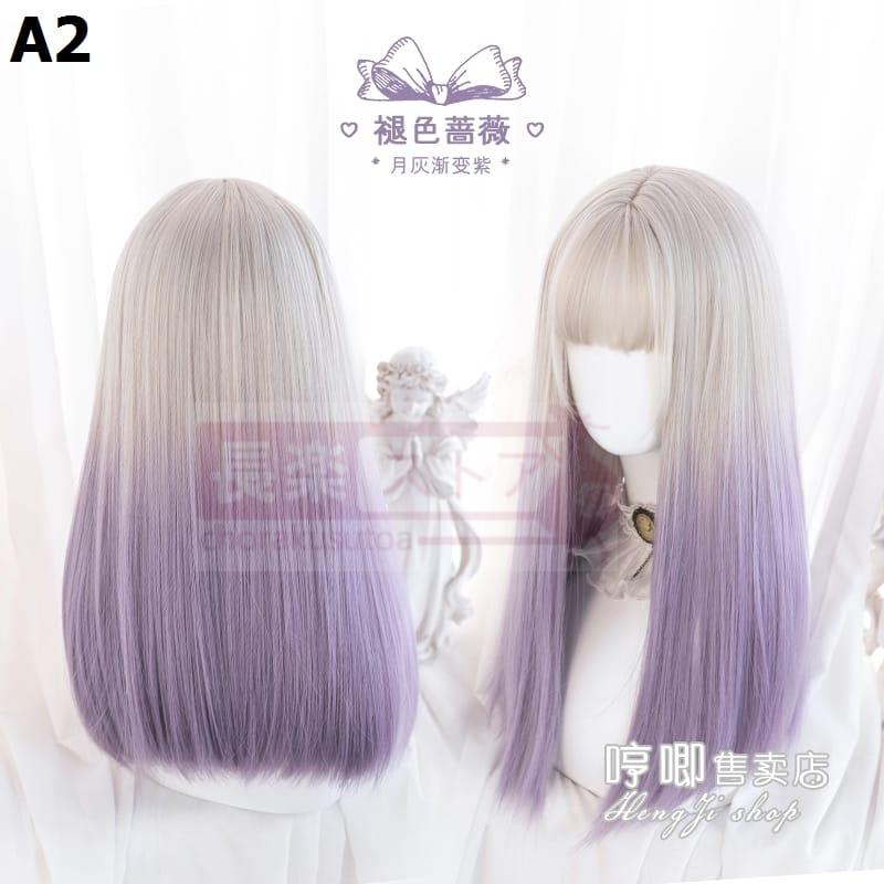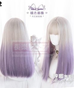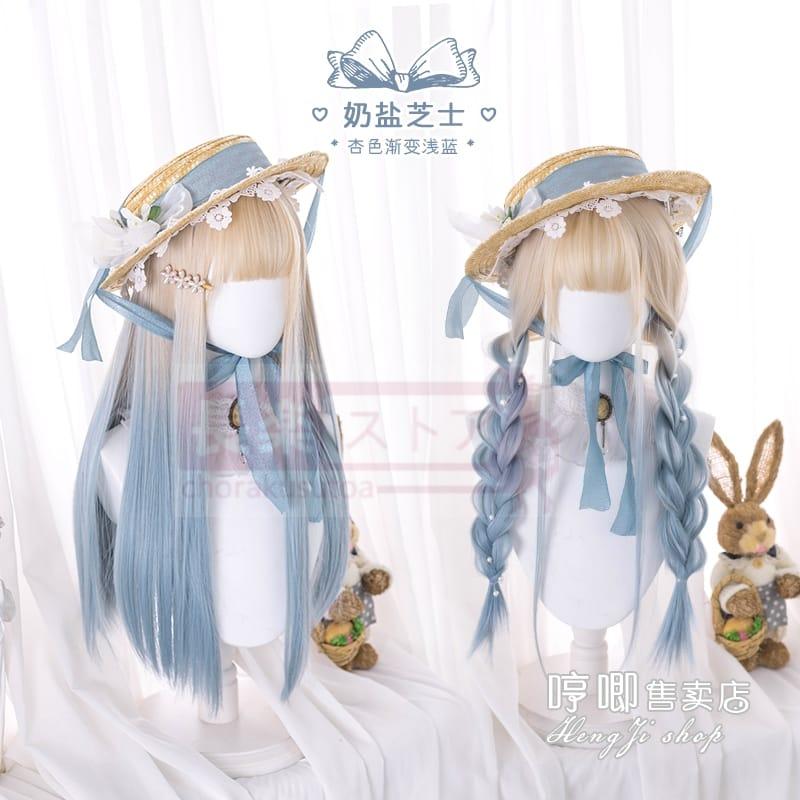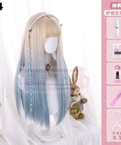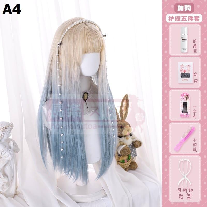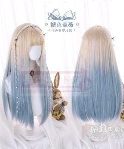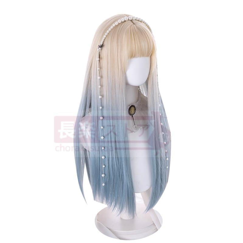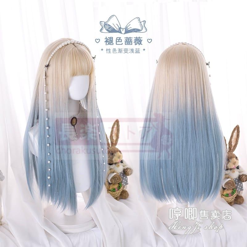 口ずさむウィッグ女性ロングロングヘアlolitaグラデーションブルーナチュラルネットレッドY 2 K少女JKロングストレートヘアフルセット