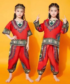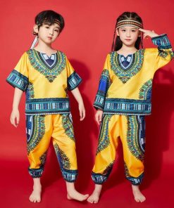 子供ダンス衣装 キッズ ダンス ステージ衣装 アフリカ パーフォーマンス ジャンベ 太鼓 ダンスウエア 女の子 男の子 エスニック 民族風ダンス衣装 長袖 半袖トッ