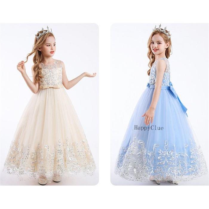 子供ドレス 女の子 ワンピース ドレス 子供 発表会 白 緑 青 紫 赤 シャンペン色 ピアノ演奏会 キッズドレス リボン ワンピースドレス パーティー お姫様ドレス