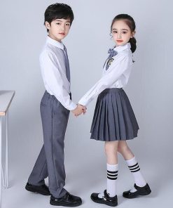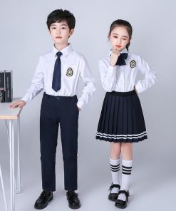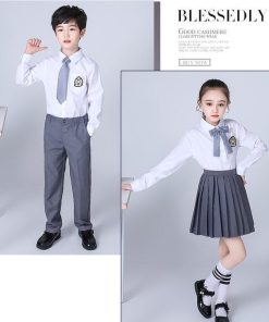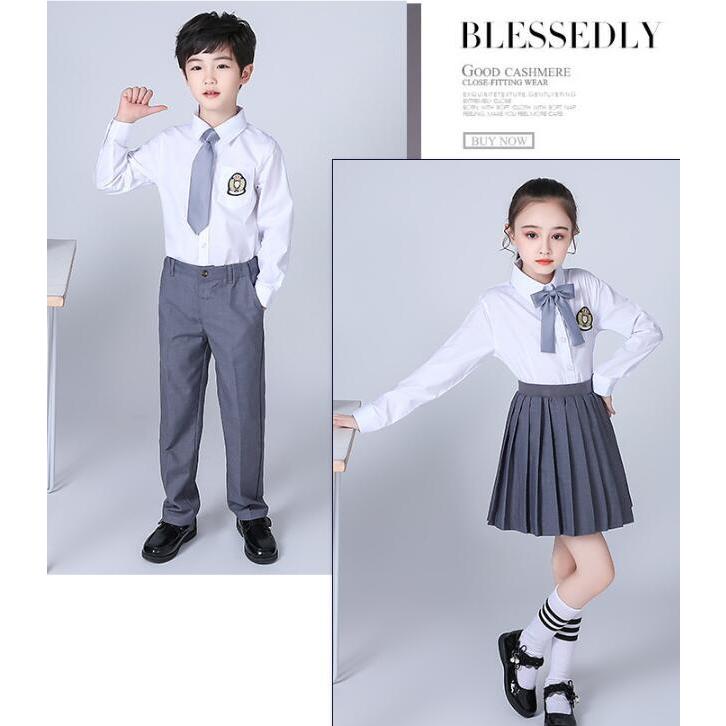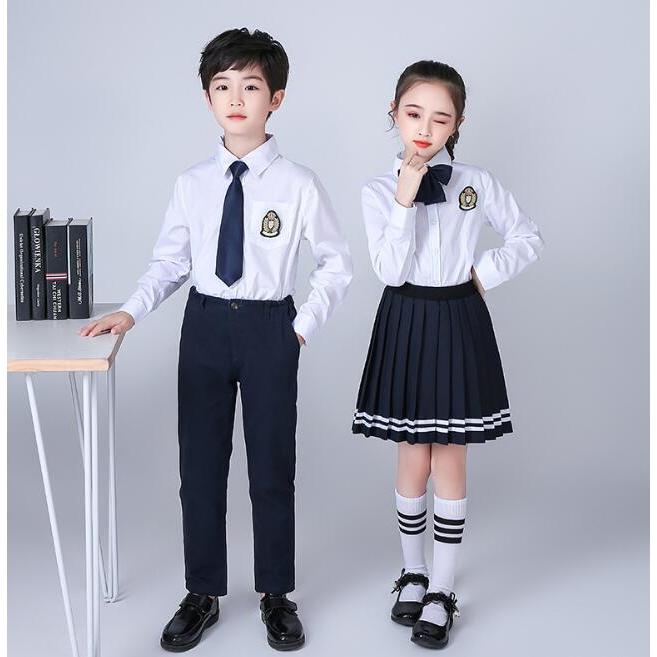 子供制服 子供スーツセット 長袖ブラウス(ワイシャツ)+長ズボン/スカート イギリス風舞台ステージ衣装 幼稚園中小生学園制服 女の子 男の子 キッズダ