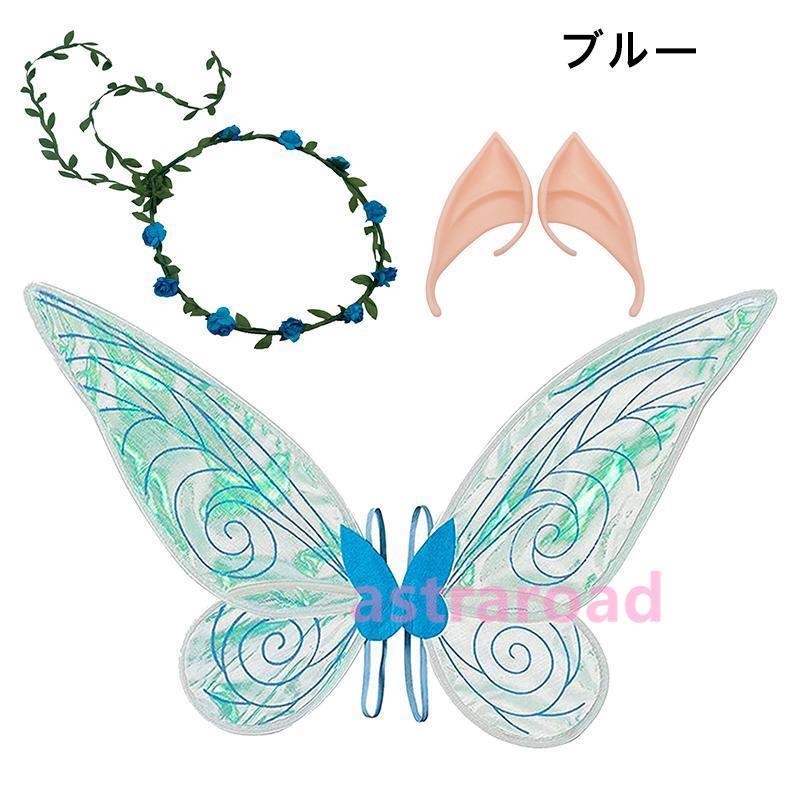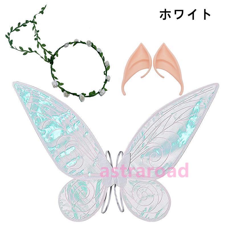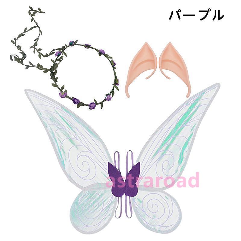 子供用コスチューム服 女の子 蝶のつばさ 妖精 チョウ 羽根 女児コスチューム 変装 衣装 学芸会幼稚園 イベント用 三点セット 蝶の羽根