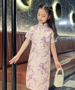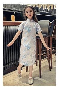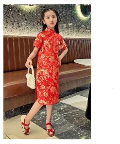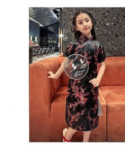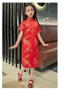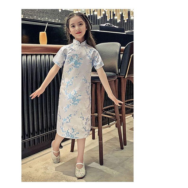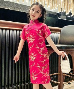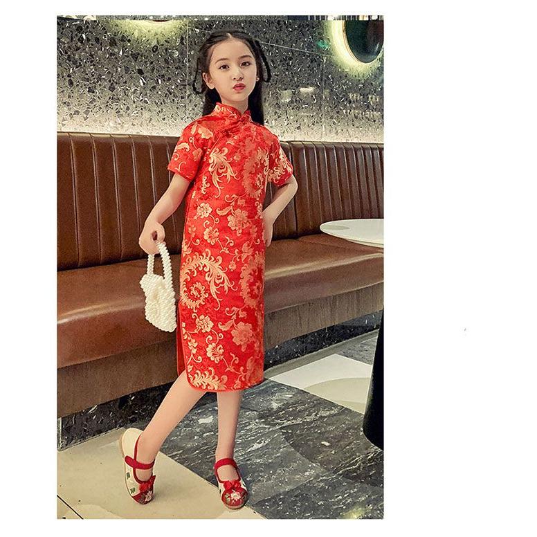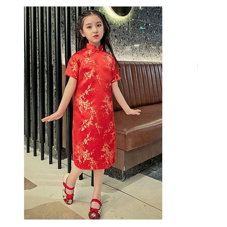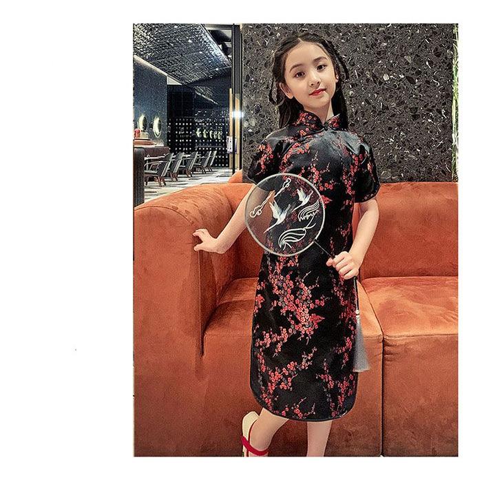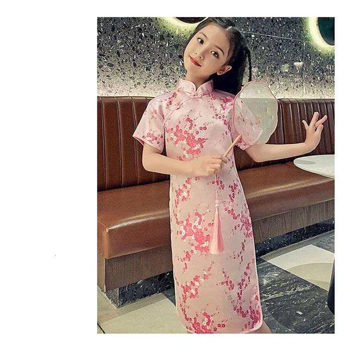 子供 チャイナドレス ショート丈 半袖 梅柄 新年 パーティードレス 発表会 演奏会 ドレス ワンピース チャイナ かわいい コスプレ ハロウ