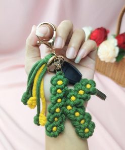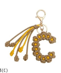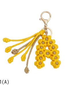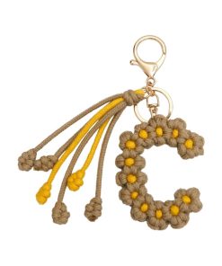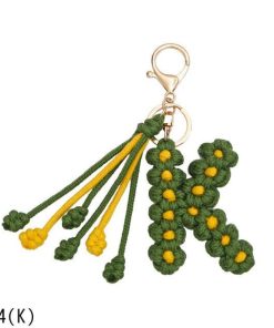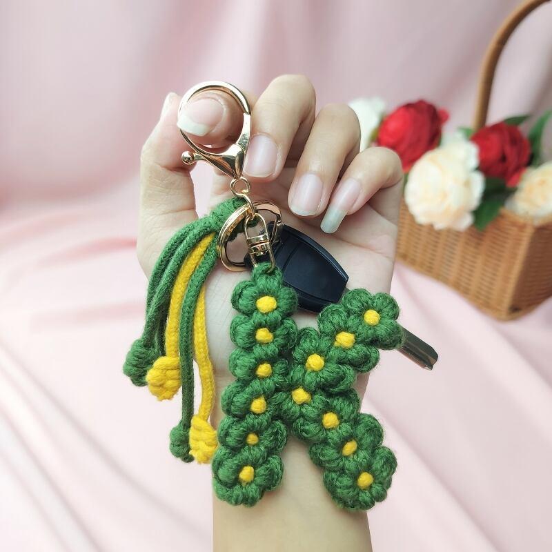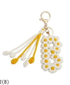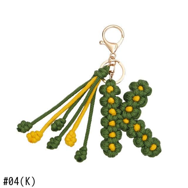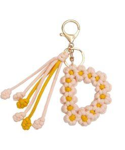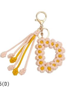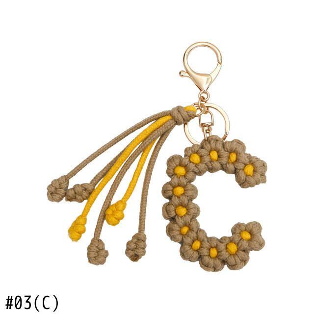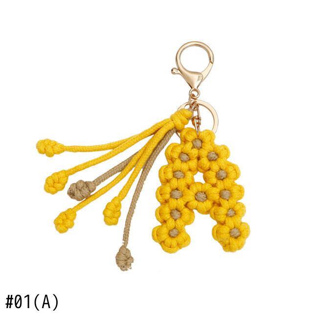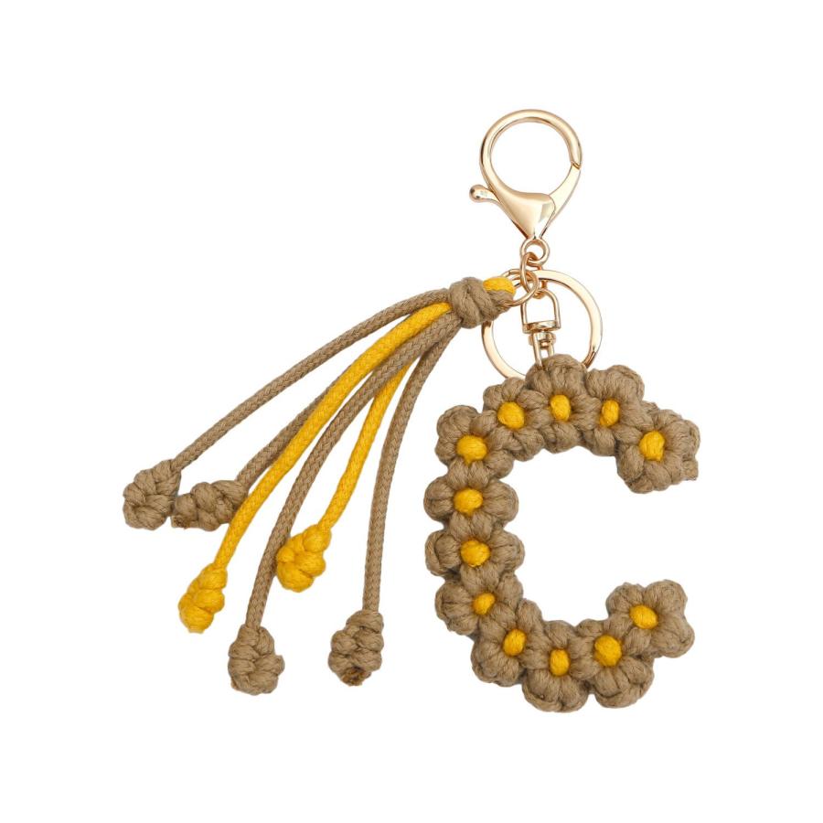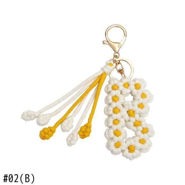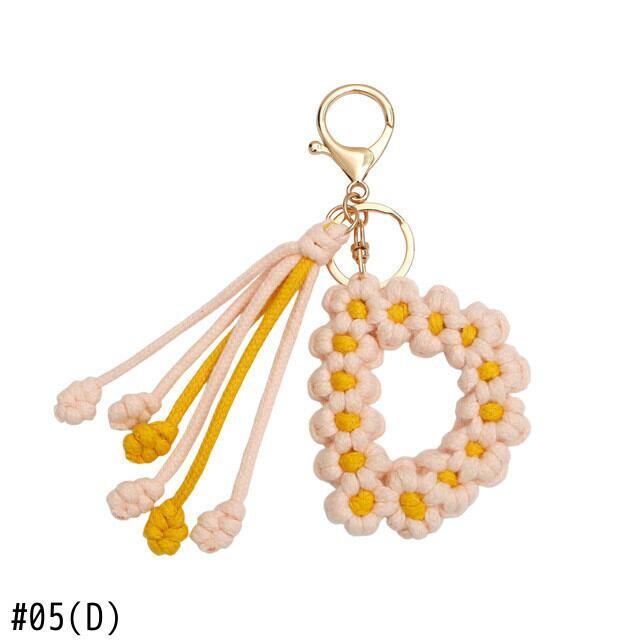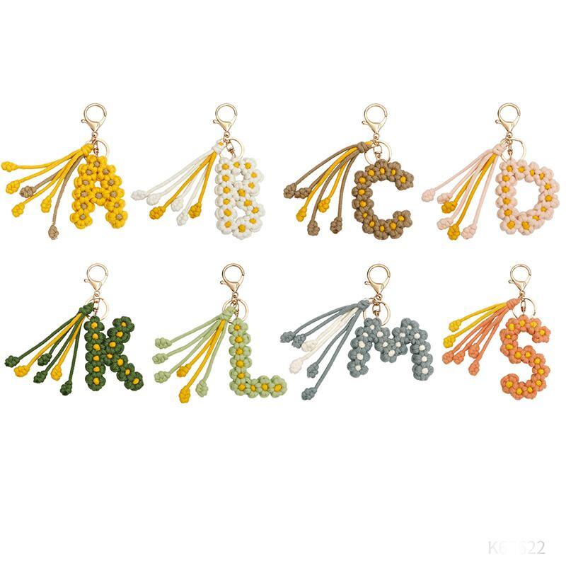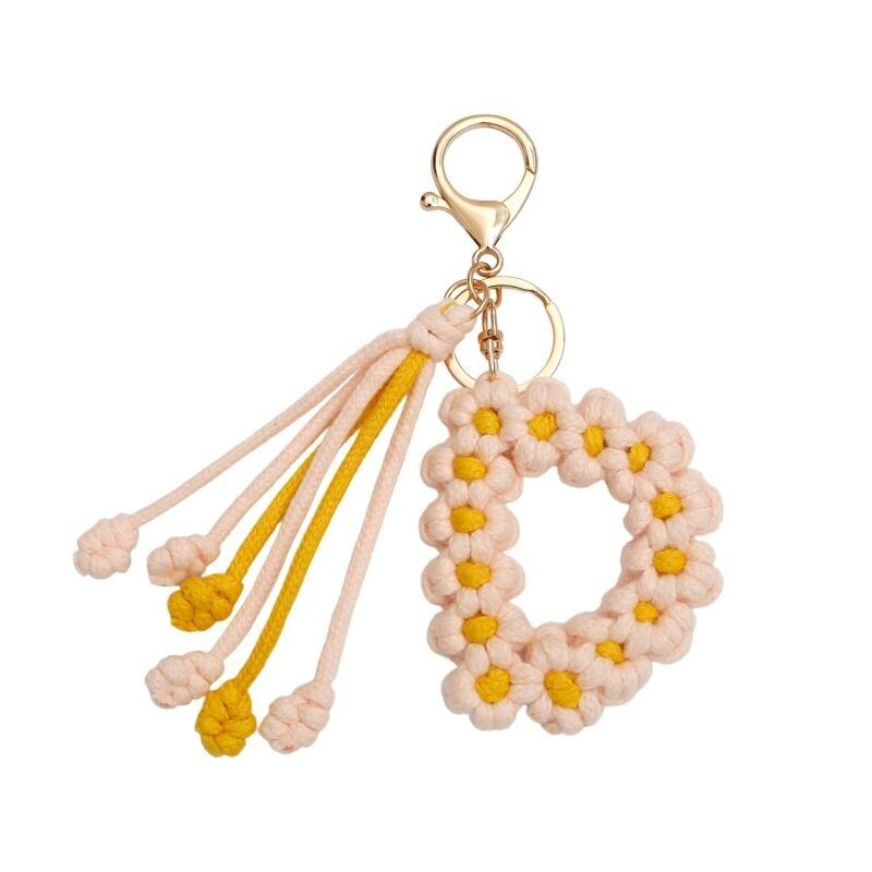 手作り編組綿ロープデイジー花アルファベットペンダントキーホルダークリエイティブバックパック金属クリップバックル文字キーホルダー