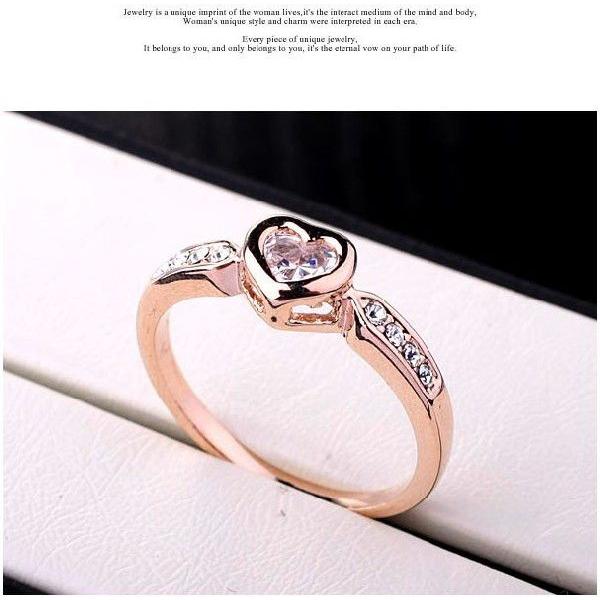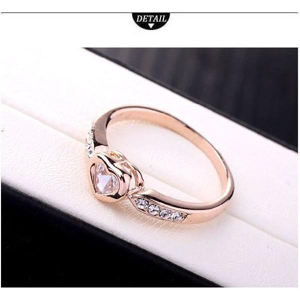 指輪 リングレディース ハート スワロフスキー 可愛い プチプレ K18金RGP 金属アレルギー対応