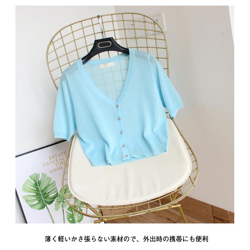 日焼け止め 薄手 サマーカーディガン 半袖 黒 ショート丈 uvカット 紫外線対策 きれいめ カーディガン レディース 夏 白