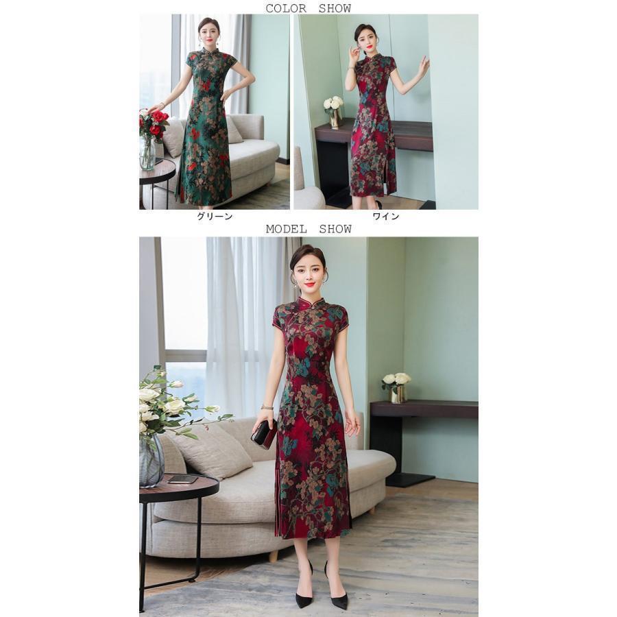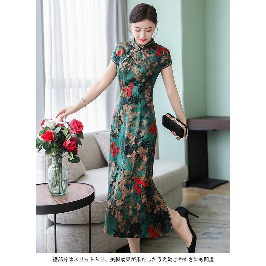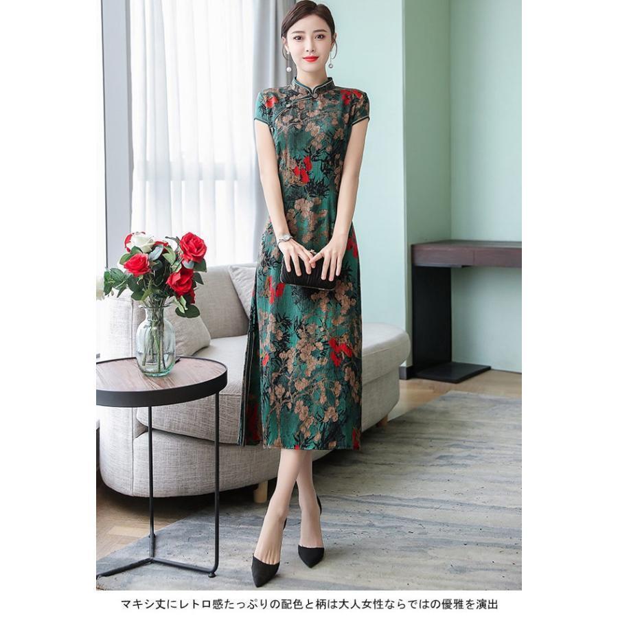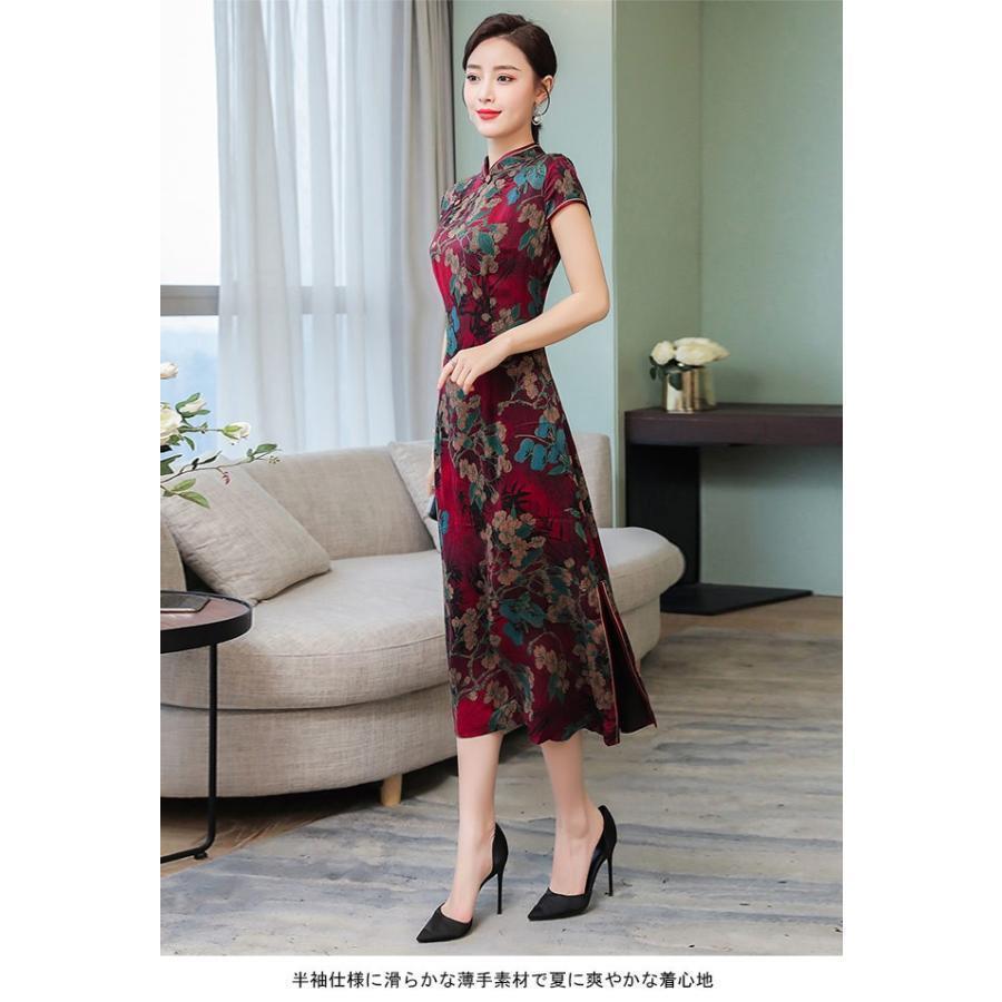 春 夏 チャイナドレス 半袖 ワンピース レトロ ロングワンピ 花柄 半袖ワンピース 薄手 エレガント ドレス 宴会 パーティー 結婚式 演出