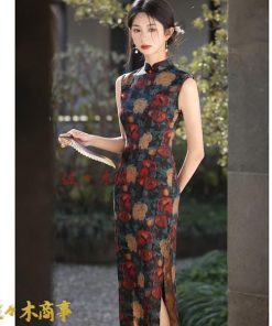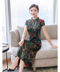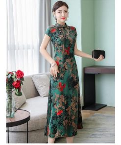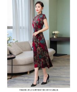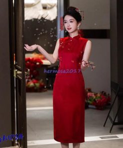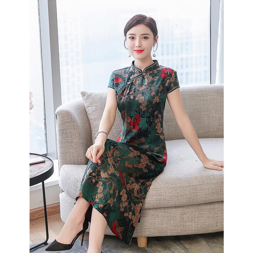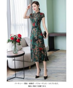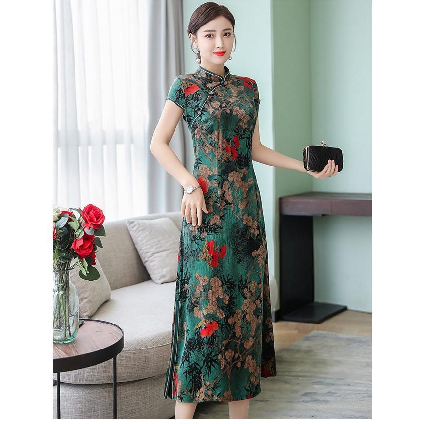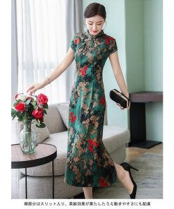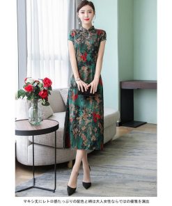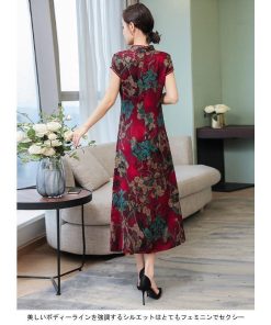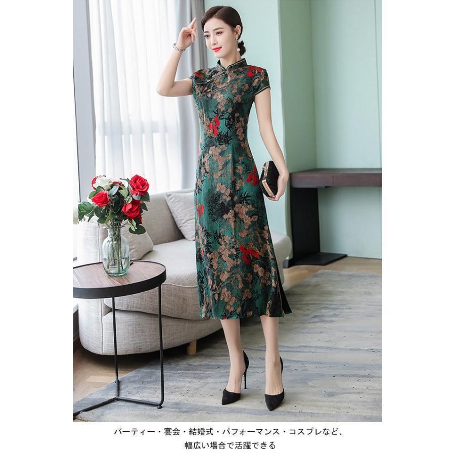 春 夏 チャイナドレス 半袖 ワンピース レトロ ロングワンピ 花柄 半袖ワンピース 薄手 エレガント ドレス 宴会 パーティー 結婚式 演出