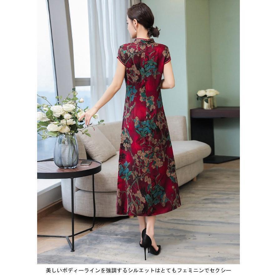 チャイナドレス 半袖 夏 ワンピース レトロ ロングワンピ 花柄 半袖ワンピース 薄手 エレガント ドレス 宴会 パーティー 結婚式 演出
