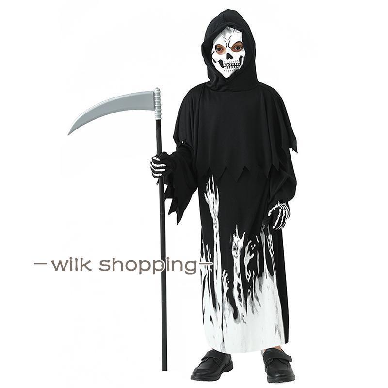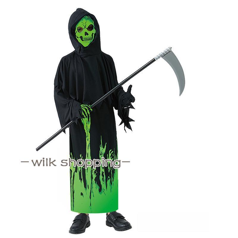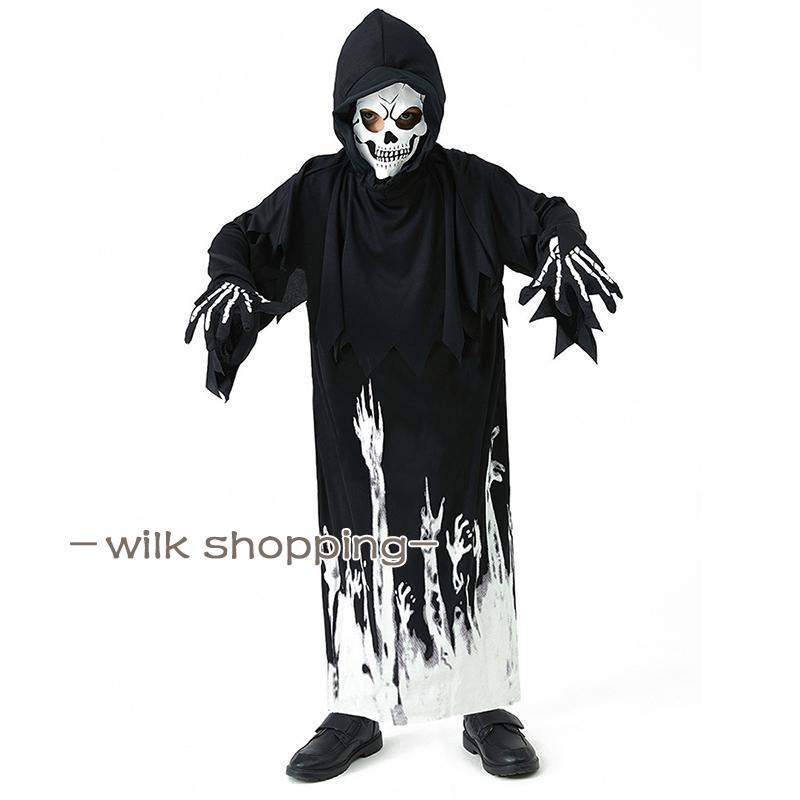 死神 夜光 衣装 お化け 光る 夜光骸骨 夜光死神 仮服 子供 子供服 キッズ 仮装 女の子 男の子 骸骨 怖い