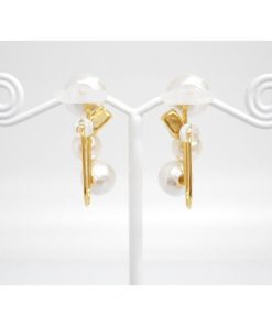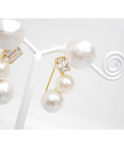 痛くないイヤリング コットンパール クリスタル ゴールド ピナチョコ