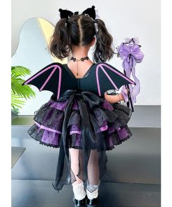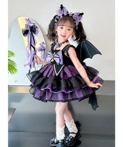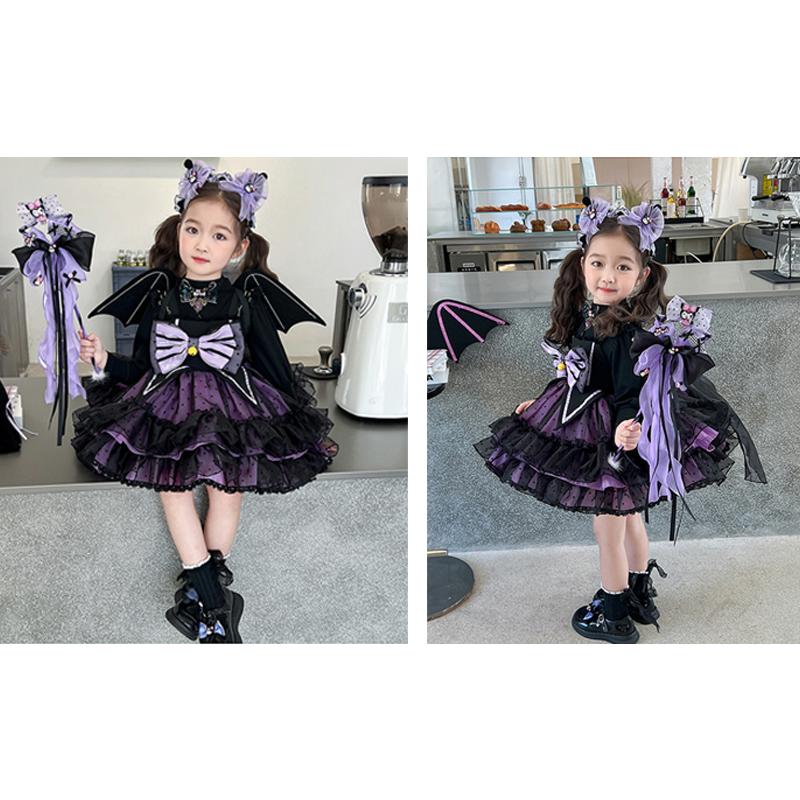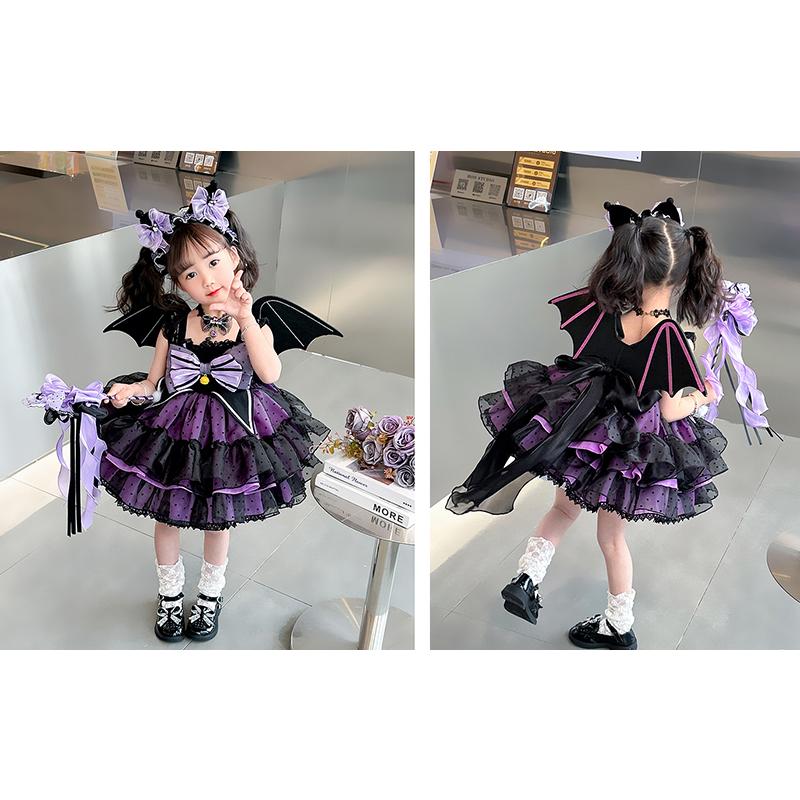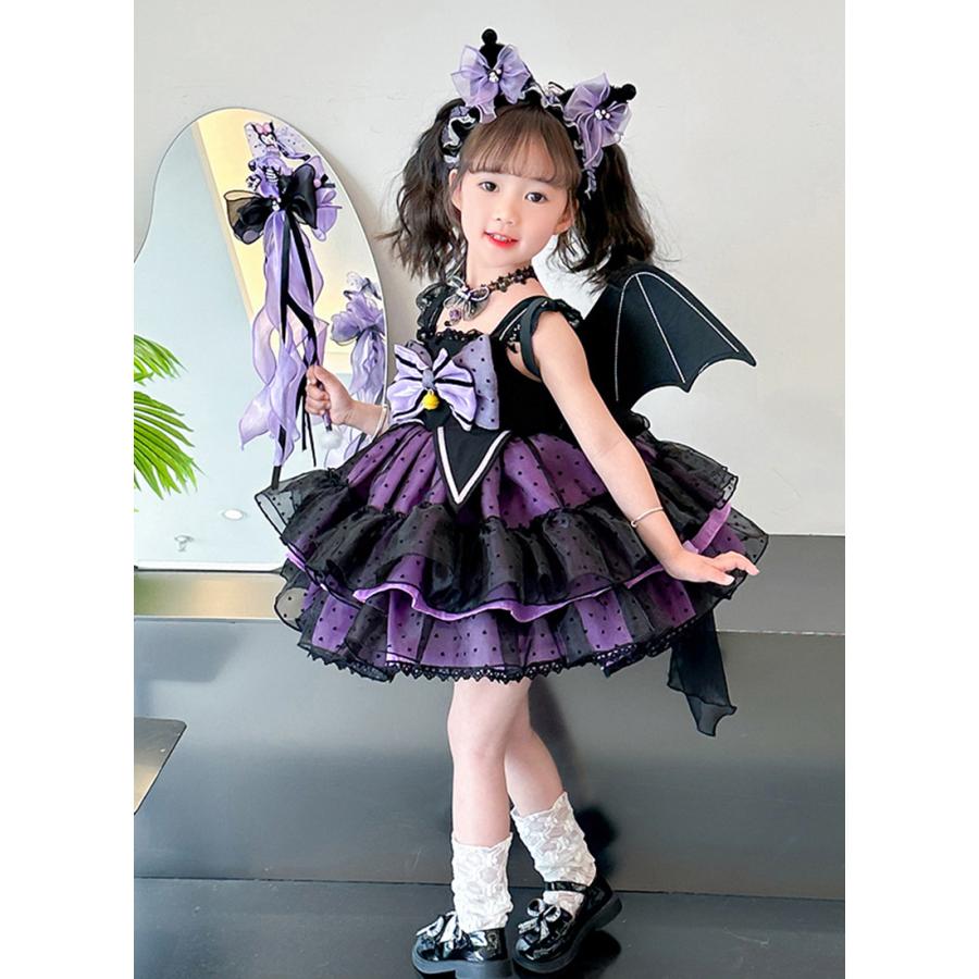 発表会 ドレス 子どもドレス コンクール 子供ドレス ピアノ発表会 コウモリ 6点セット ハロウィン キッズ 子供ワンピース 女の子 衣装 ワンピース ゴシック かわ