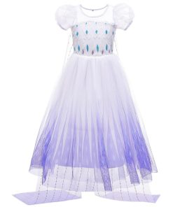 白 エルサ ドレス キッズ アナと雪の女王 子供 用 半袖 ハロウィン 衣装 コスチューム コスプレ プリンセス 女の子 誕生日 プレゼント 100 110 120 130 140 cm