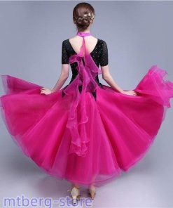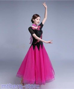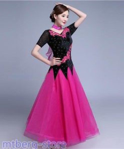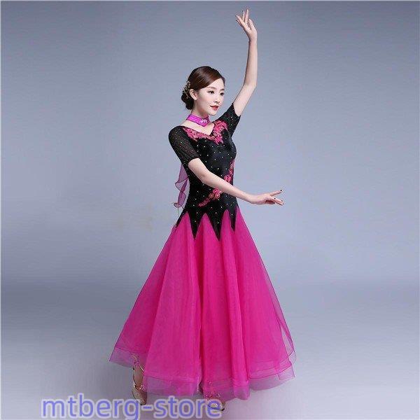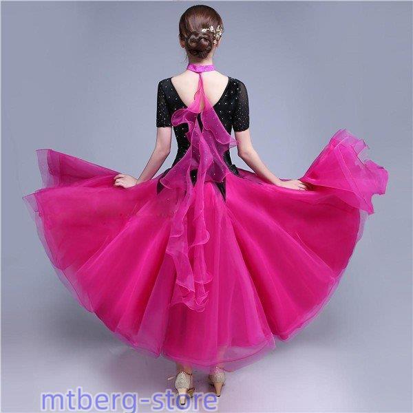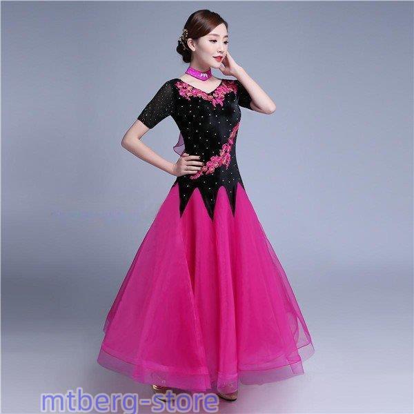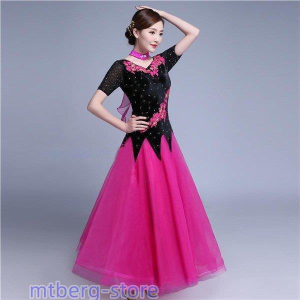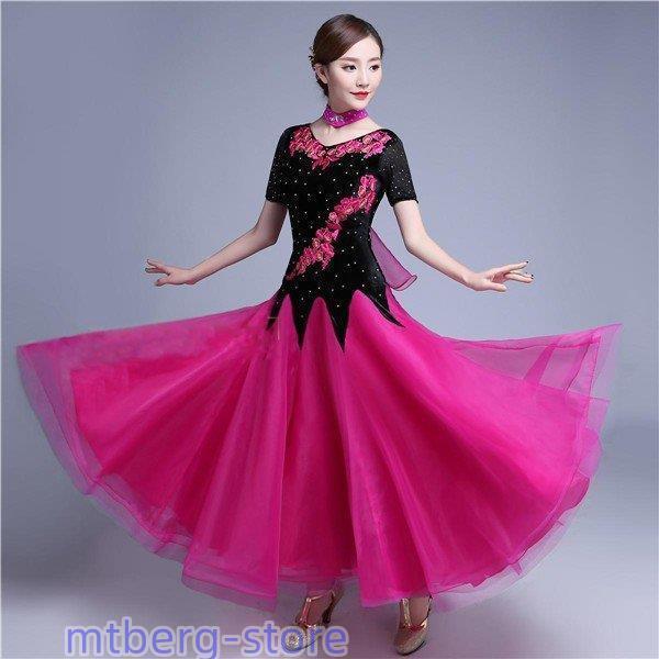 新作 社交ダンス 衣装 モダンドレス ラテンドレス ラテン衣装 社交ダンスドレス 大きい裾 M~XL 半袖 ダンス衣装 競技着 練習服 演出用 ローズ ワンピース スタンダードドレス ワルツダンス服 サイズ指定可dm833d3d3x2