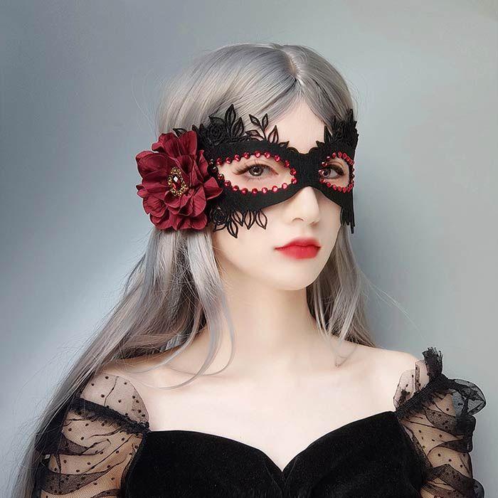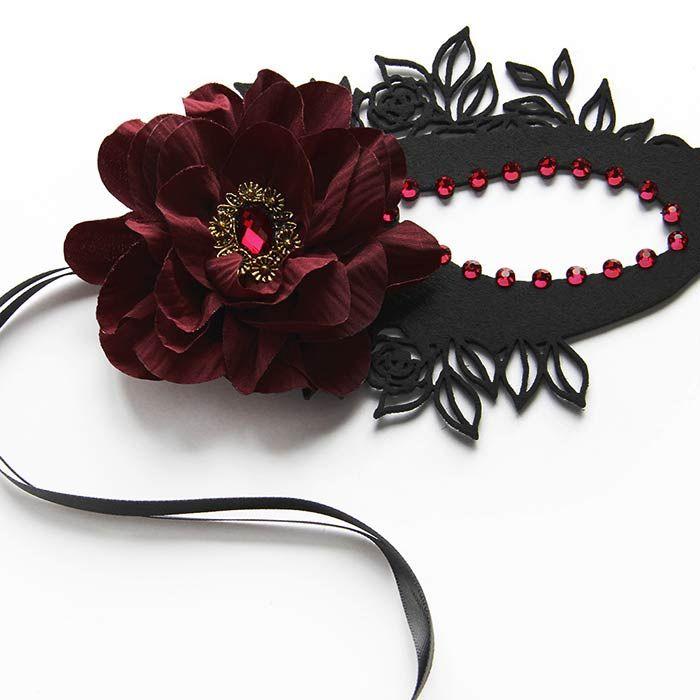 花付き 半面 マスク 黒 仮面 パーティーグッズ イベント用品 プチ仮装 コスプレ小物 小道具 ハロウィン 仮装 コスプレ コスチューム