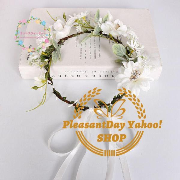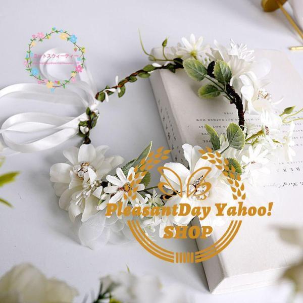 花冠 安い ウェディング ホワイト ビジュー ヘッドドレス 花かんむり 造花 髪飾り 花輪 ブライダル 大人用 リゾート 旅行 花嫁 二次会 結婚式 森ガール 手作り