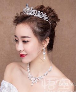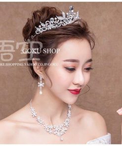 花嫁 ヘッドドレス ティアラ 結婚式 安い 王冠 バロック 髪飾りネックレス ブライダル イヤリング 3点セット 演奏会/二次会/披露宴/発表会