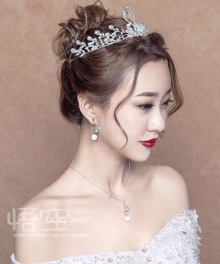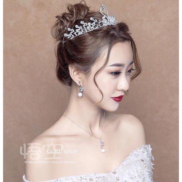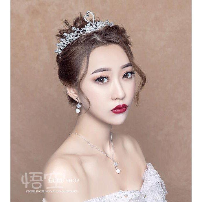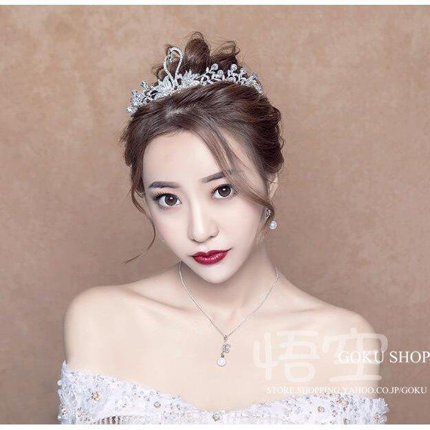 花嫁 ヘッドドレス ティアラ 結婚式 安い 髪飾り 王冠 クラウン ネックレス ブライダル イヤリング 3点セット ステージ 演奏会/二次会/披露宴/発表会