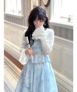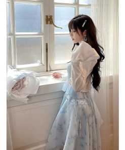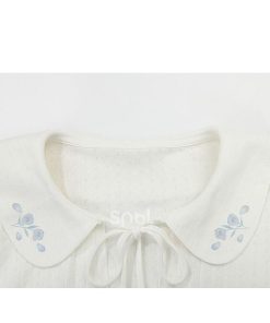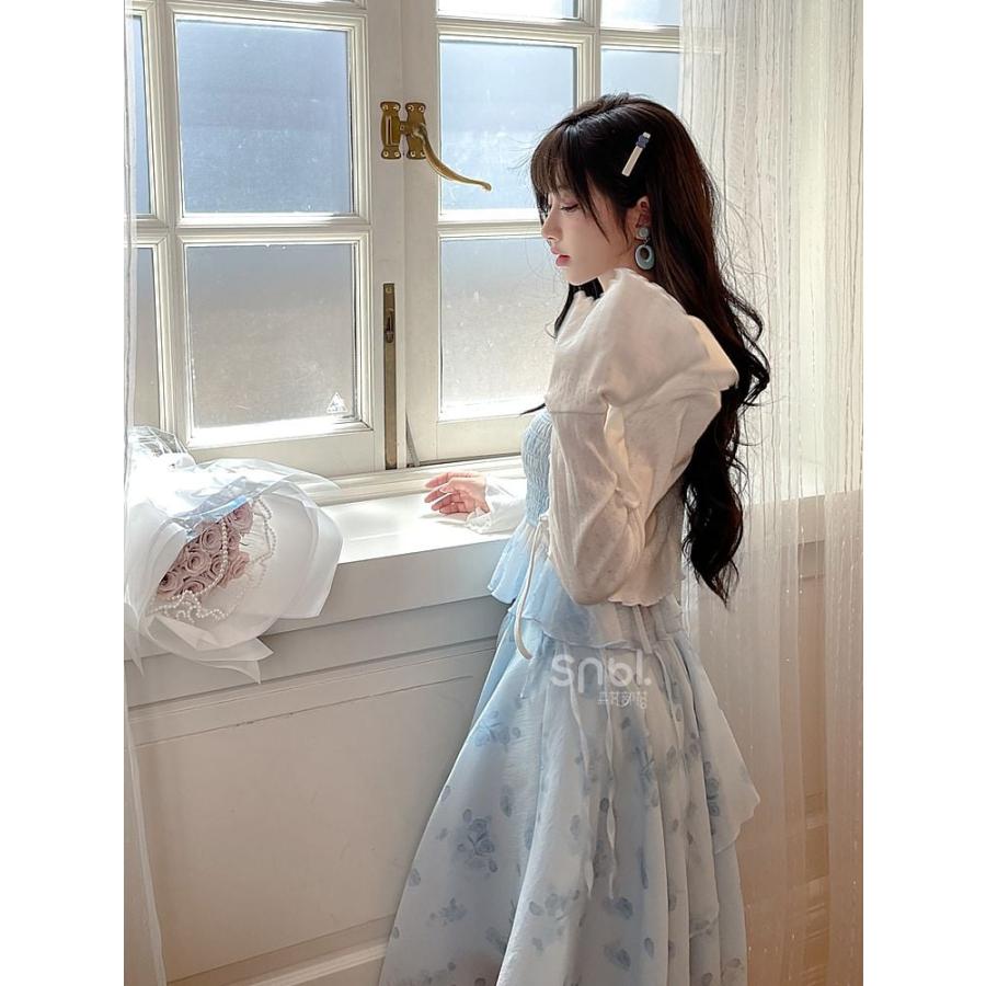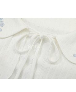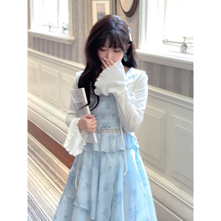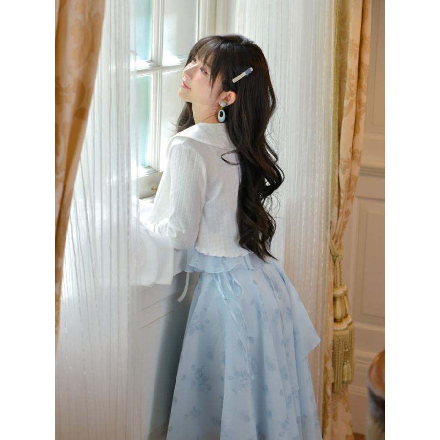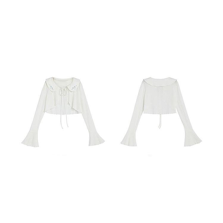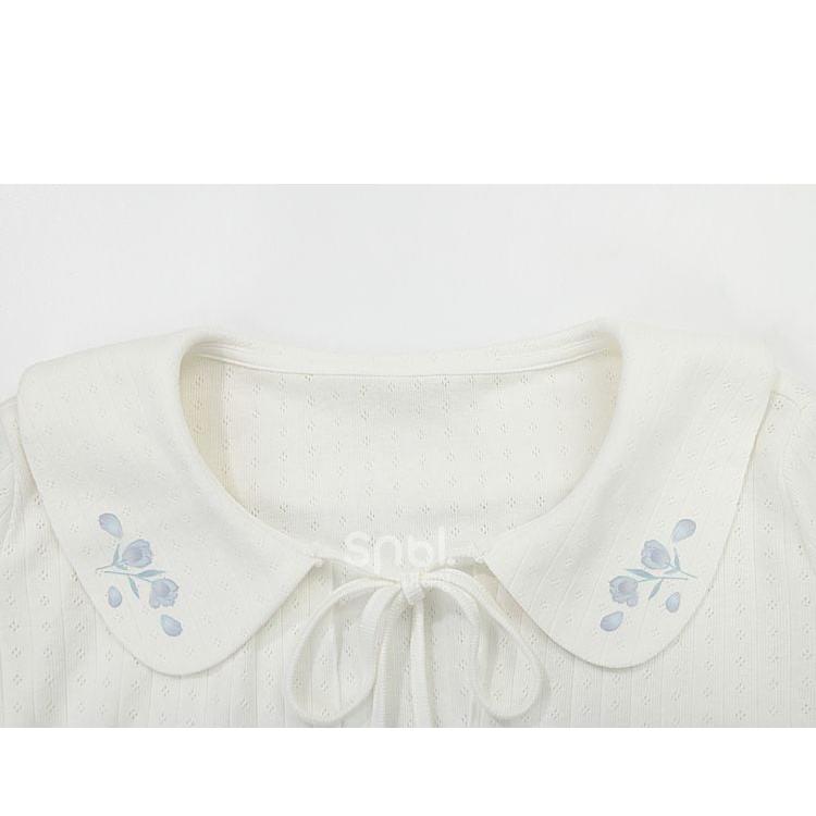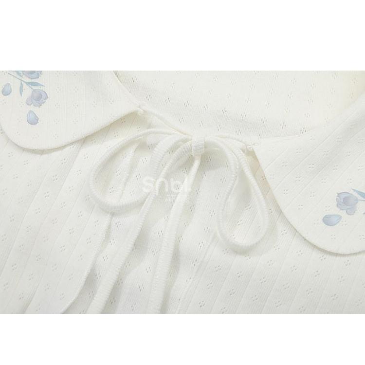 花柄ピーターパンカラーホワイトベルスリーブトップ
