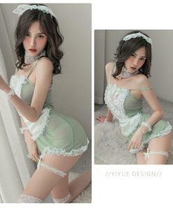 胸元の透けたレースのワンピースがなメイド服7点セット♪