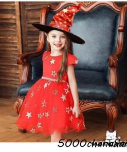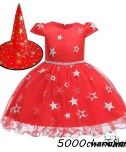 衣装 子供 キッズドレス 巫女 女の子 星柄 チュール の 2点セット 帽子付き コスチューム 衣装 子供服 万聖節 コスチューム イベント