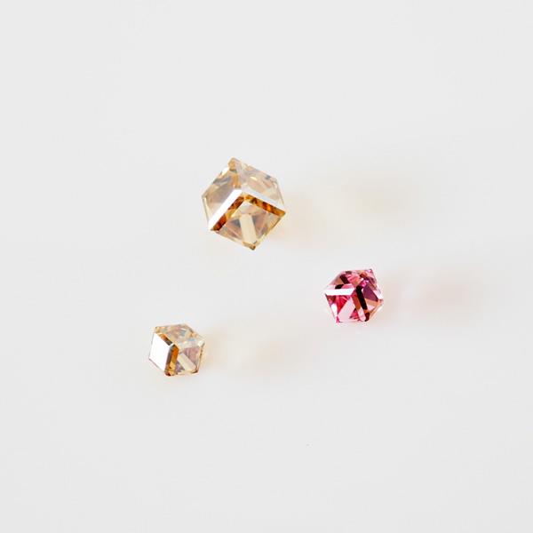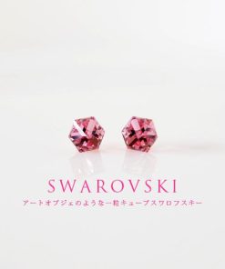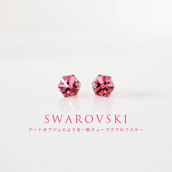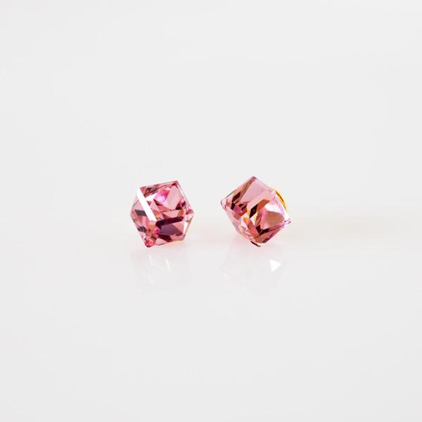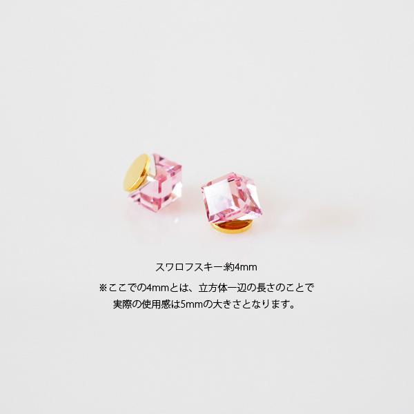 貼るピアス スワロフスキー イヤリング 痛くない 40代 キューブ ライトローズ