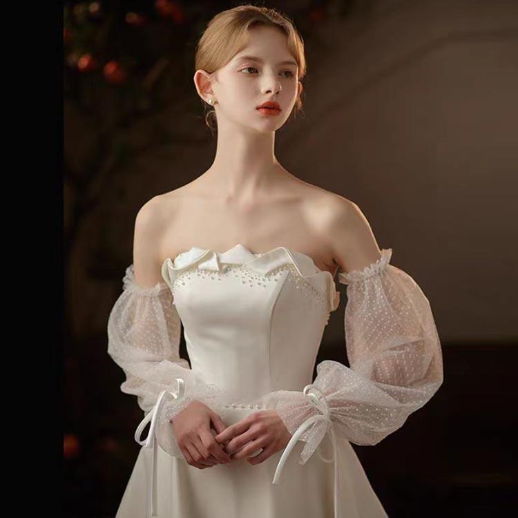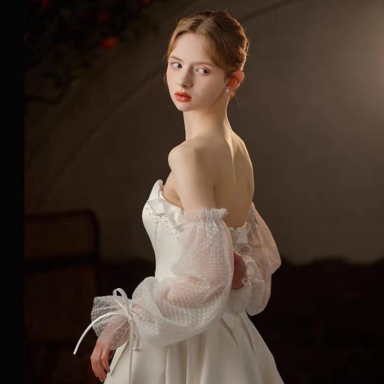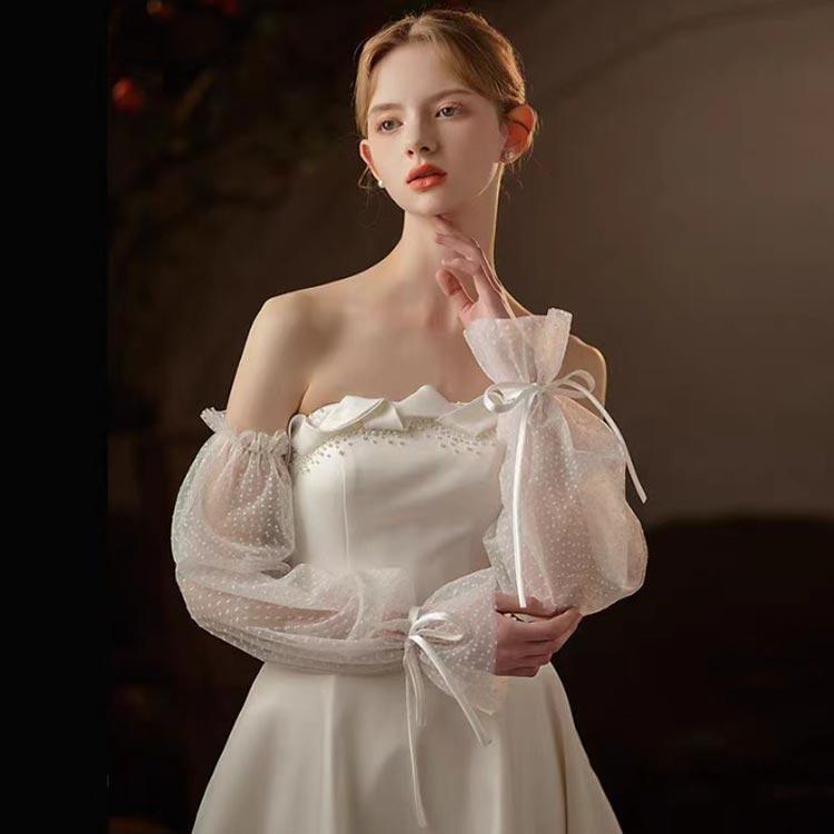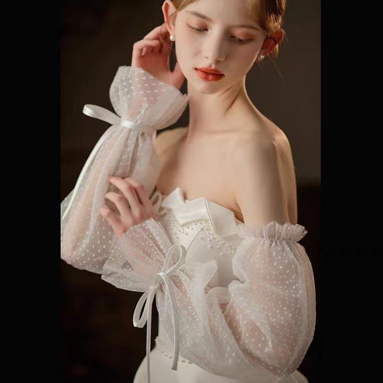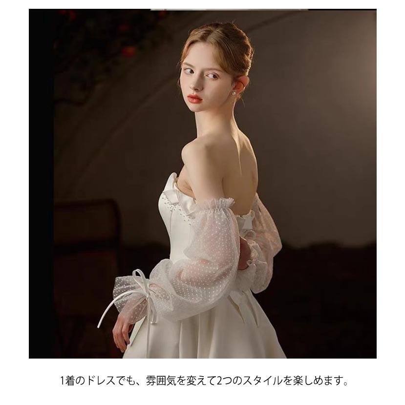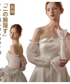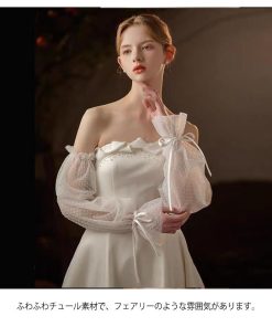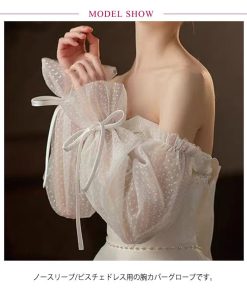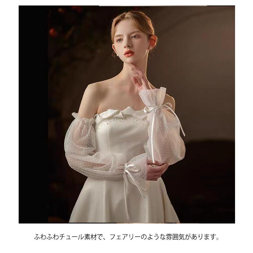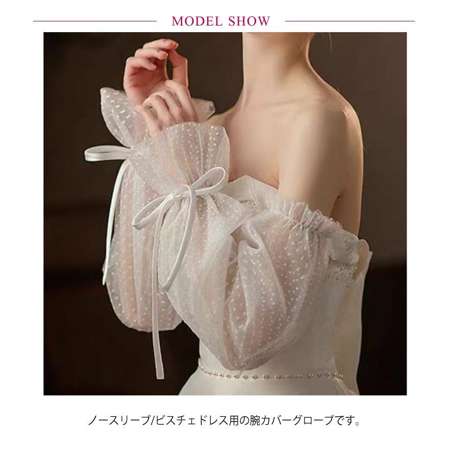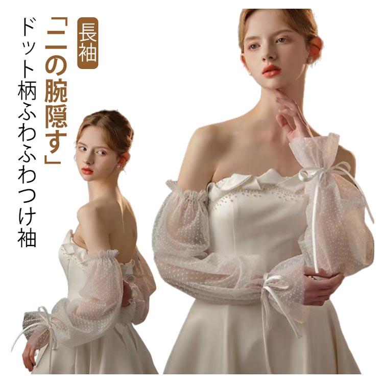 長袖 アームカバー 二の腕 ふんわり ふわふわつけ袖 付け袖 隠し パフスリーブ 柄 アームドレス ドット リボン ゴム留め ソフトチュール