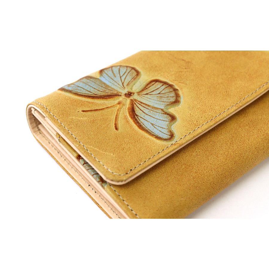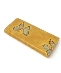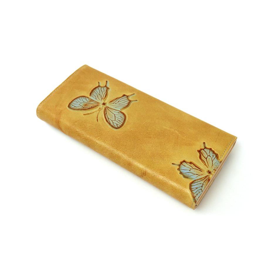 上質なイタリア製の牛革に蝶の型押しを施したドルチェシリーズ。オーダーメイドの一点もののように、それぞれ違う蝶が美しく舞う華やかなデザインになっています。