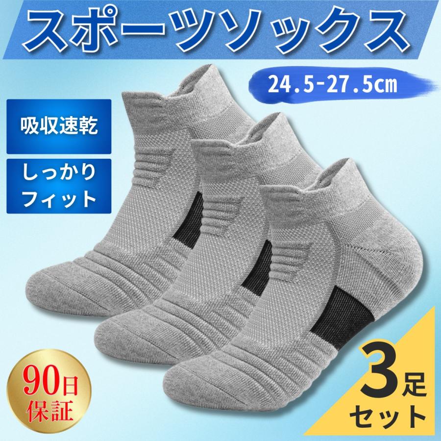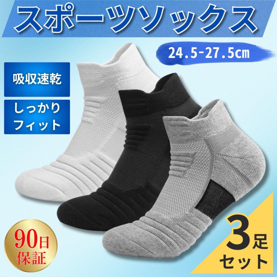 靴下 メンズ スポーツ 厚手 スポーツソックス 3足 セット ショート くるぶし ビジネス 黒 白 灰 ブラック ホワイト グレー