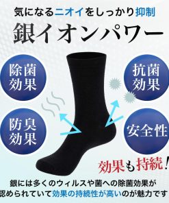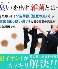 銀イオン配合で強い抗菌消臭効果のある靴下です。