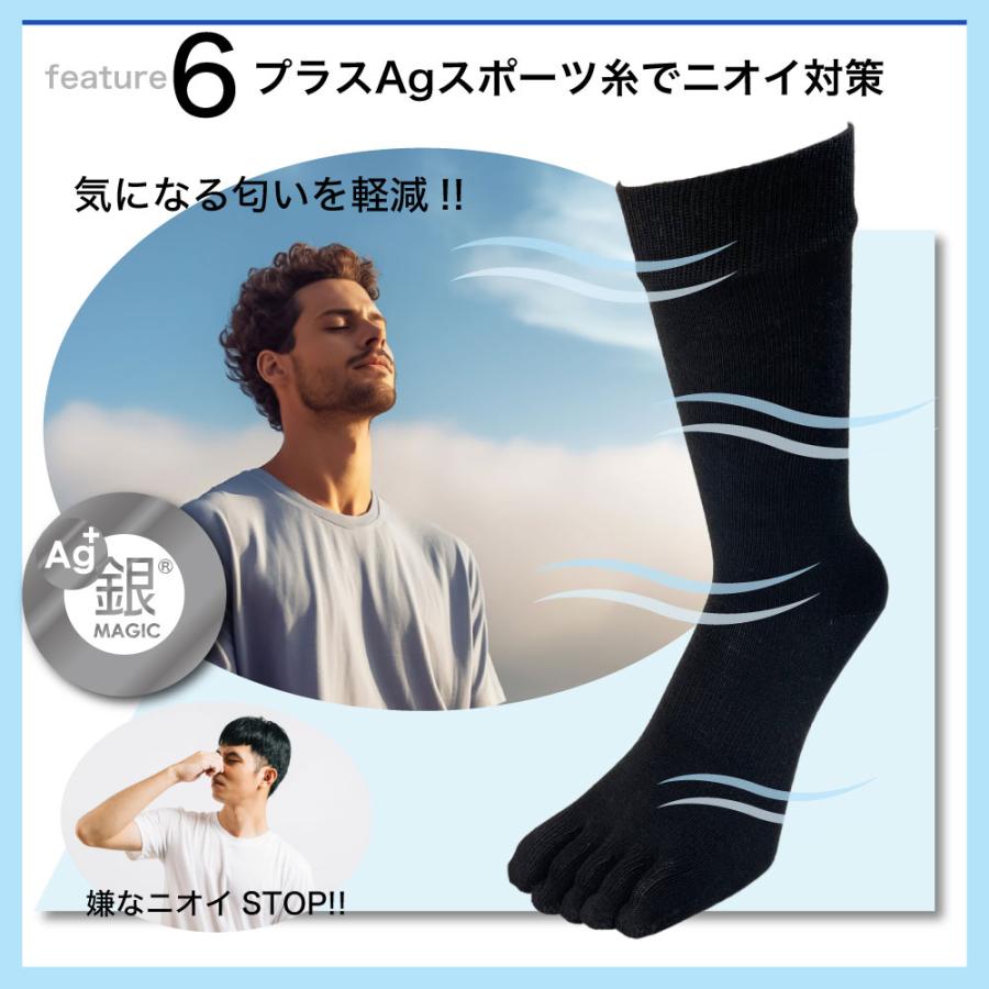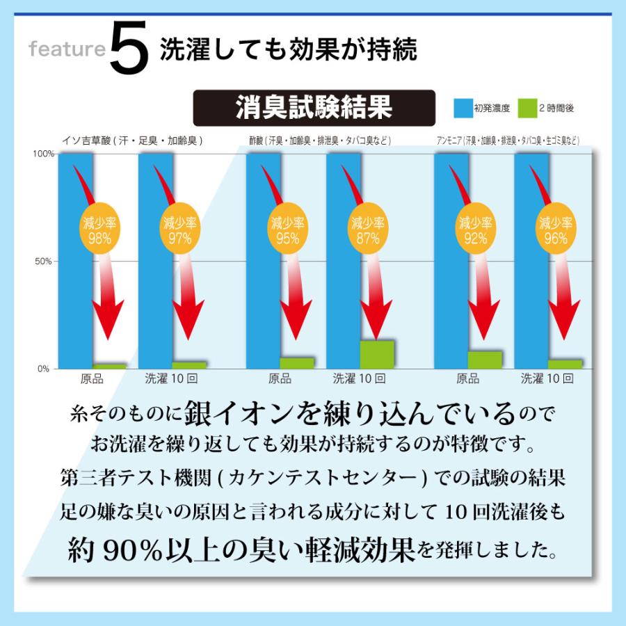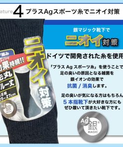 ドイツで開発された銀イオンを配合した糸「プラスAGスポーツ」は、高い抗菌効果を発揮しあなたの足のニオイを防ぎます。