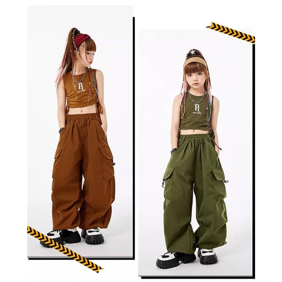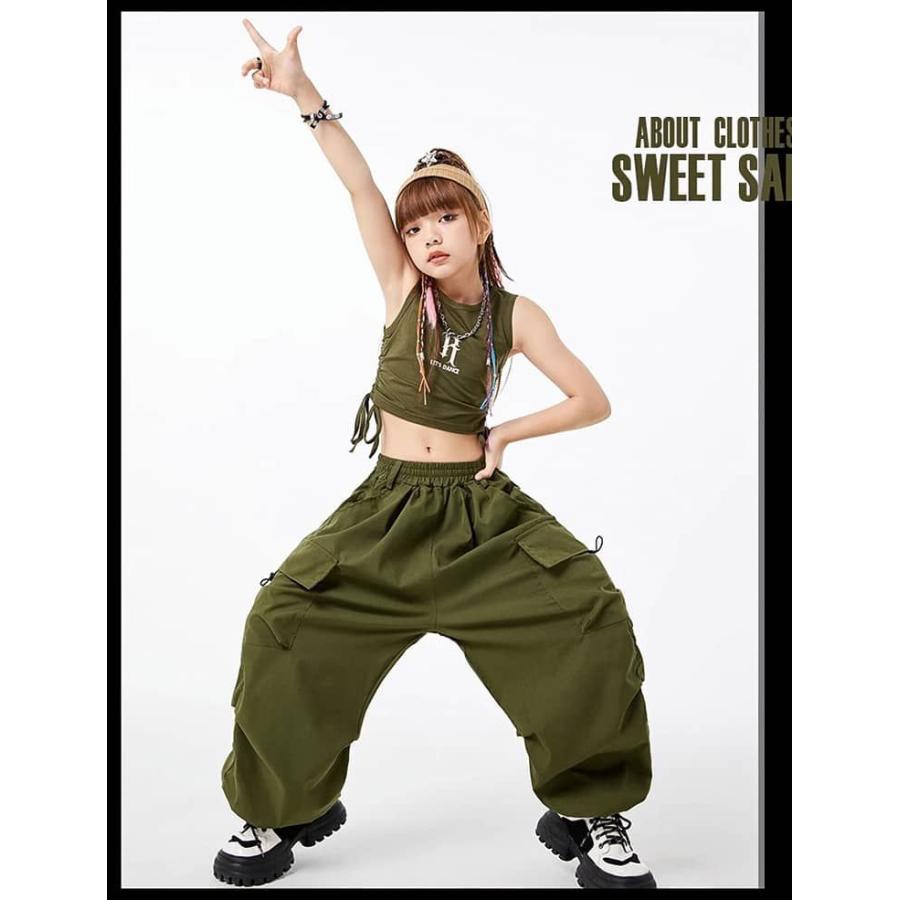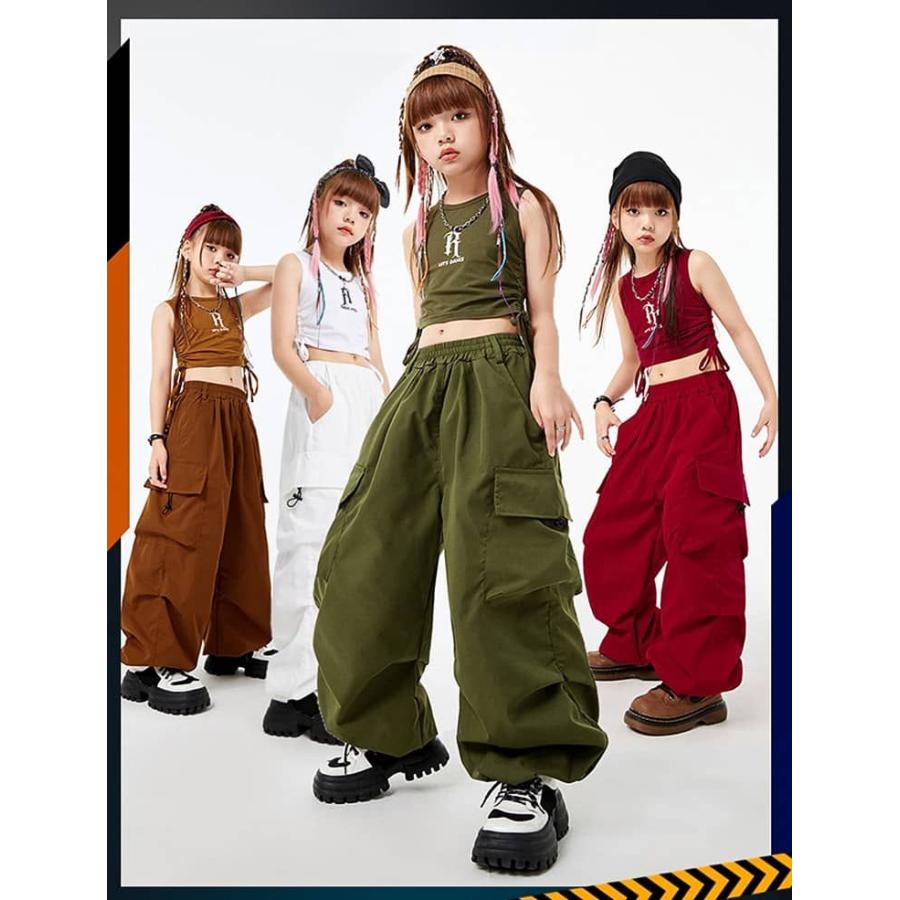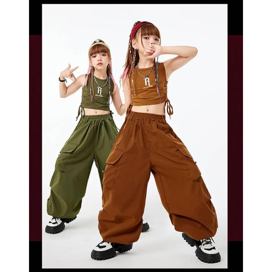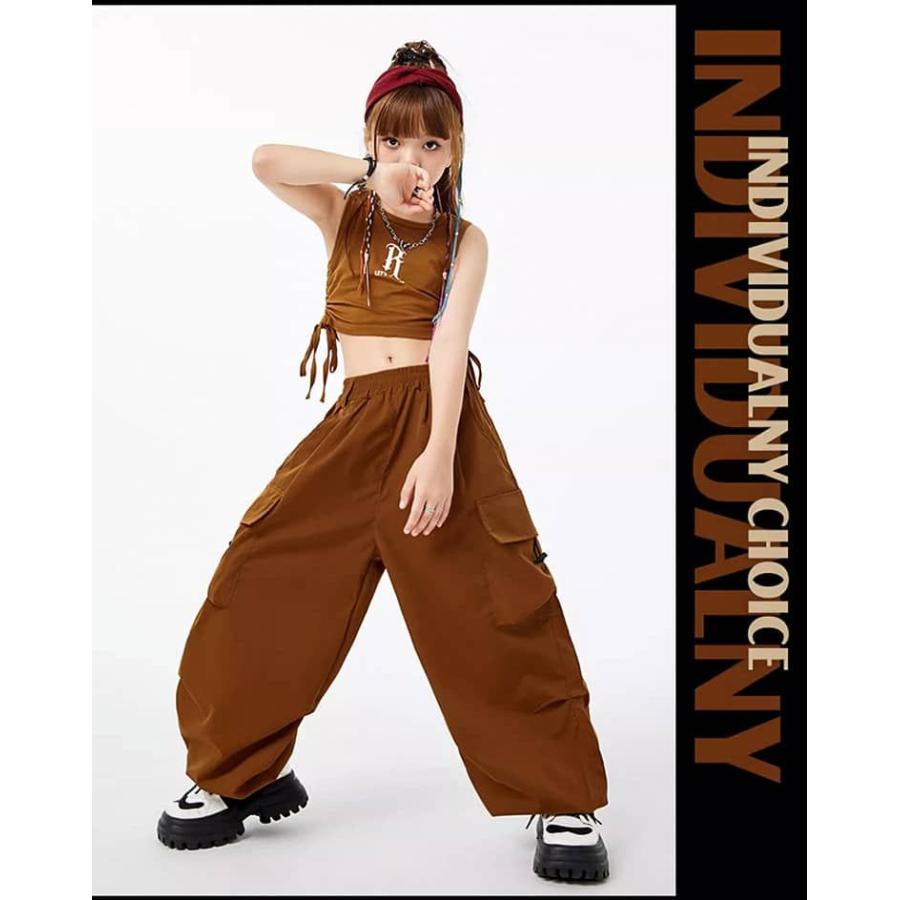 韓国 発表会 キッズ ダンス衣装 ブラウン グリーン ホワイト ワインレッド セットアップ 女の子 可愛い 秋 夏 ストリート レッスン着 練習 ヘソ出し 団体服 応援