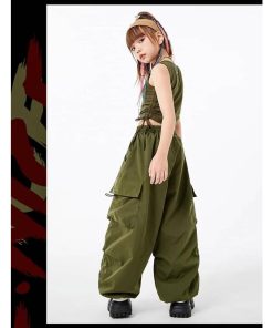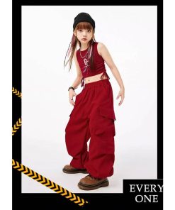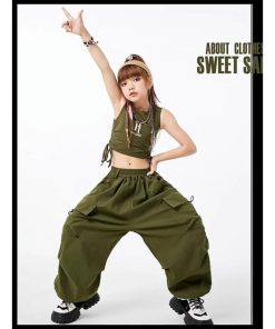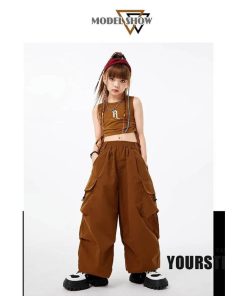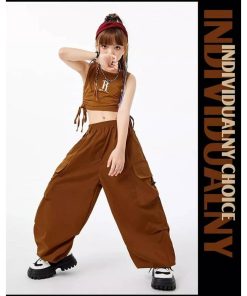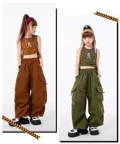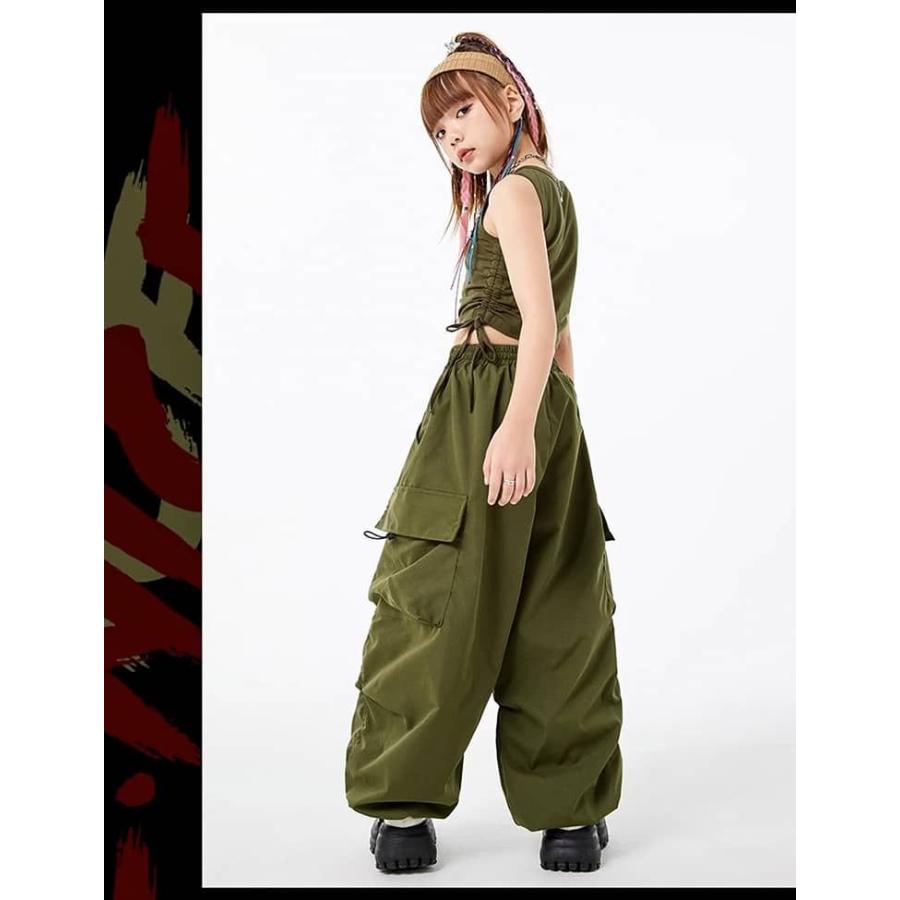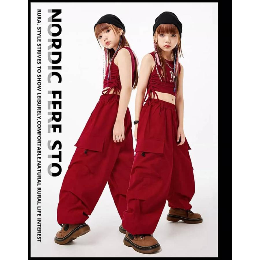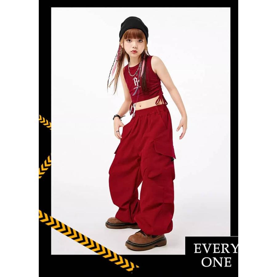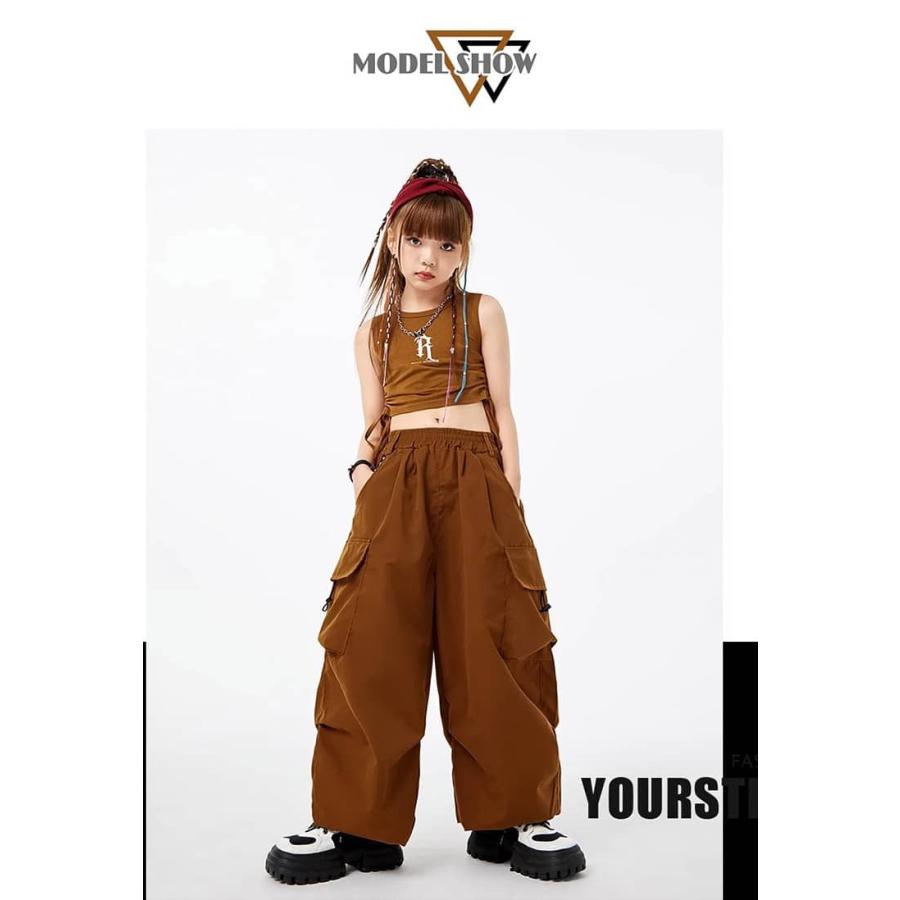 韓国 発表会 キッズ ダンス衣装 ブラウン グリーン ホワイト ワインレッド セットアップ 女の子 可愛い 秋 夏 ストリート レッスン着 練習 ヘソ出し 団体服 応援