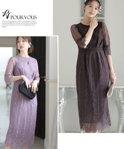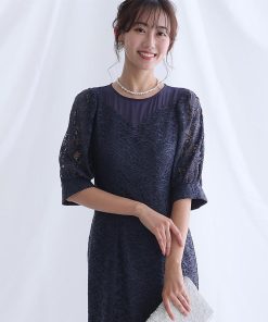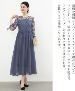 【商品特徴】 ロング丈 ミモレ丈 膝下 七分袖 袖あり 長袖 半袖 きれいめ エレガント カジュアル 大人 上品 体型カバー 細見え 可愛い おしゃれ タイト サックス aライン 総レース 刺繍 花柄 無地