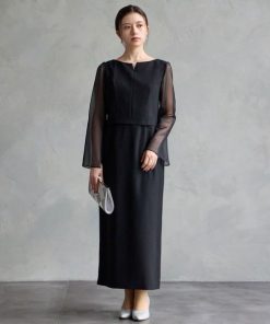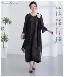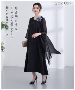 顔合わせ 服装 母 60代 フォーマルドレス 50代 結婚式 叔母 母親 ミセス フォーマルワンピース 40代 70代 お宮参り 祖母 マザーズドレス 黒121-1124-0004